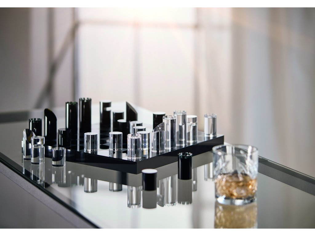 În jocul regilor, este important să vă păstrați capul limpede - ceea ce nu ar trebui să fie o problemă privind aceste piese frumoase de șah. 32 de piese realizate din sticlă acrilică transparentă, lustruită manual ce oferă perspectiva necesară. Capacul cutiei, care este tot din acril, servește și ca tablă de șah. Datorită prelucrării nobile, poate fi prezentat și ca accesoriu decorativ (atrage privirea) în sufragerie sau dormitor.