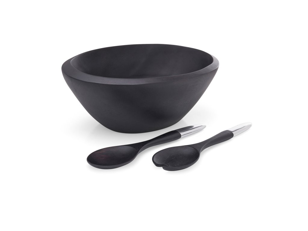 Bolul de servire fin, oval, de la marca americană Nambé, este fabricat din lemn de salcâm și cocatt cu paintă neagră. Marginile groase add bolului elegance și coloră neagră originalitate. Este inclus, de sequelso, un set de servire din lemn cu accent de alaj lucios. Colecția este potrivită în special pentru interiorul modern sau industrial. O placă de servit cu un cuțit poate fi achiziționat în semba stil.