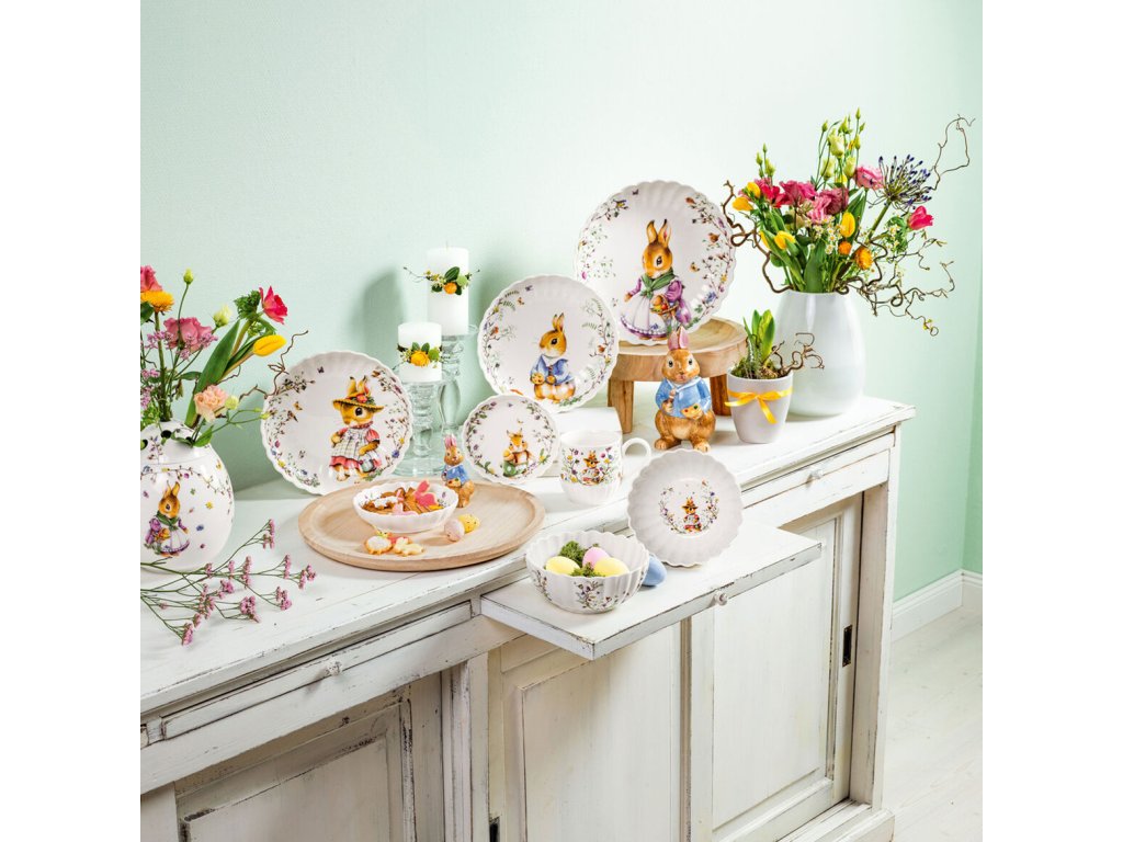 Frumosul bol pentru Paște, având ca motiv un iepuraș ce ține o pensulă și o găleată plină cu vopsea, aparține colecției Spring Fantasy a companiei germane de porțelan Villeroy & Boch. Decorul său încântă ochii și încălzește sufletul. Bolul este realizat din porțelan de înaltă calitate, în forme rotunde.