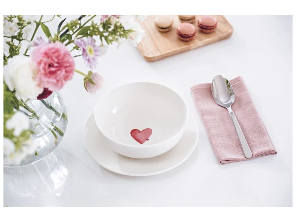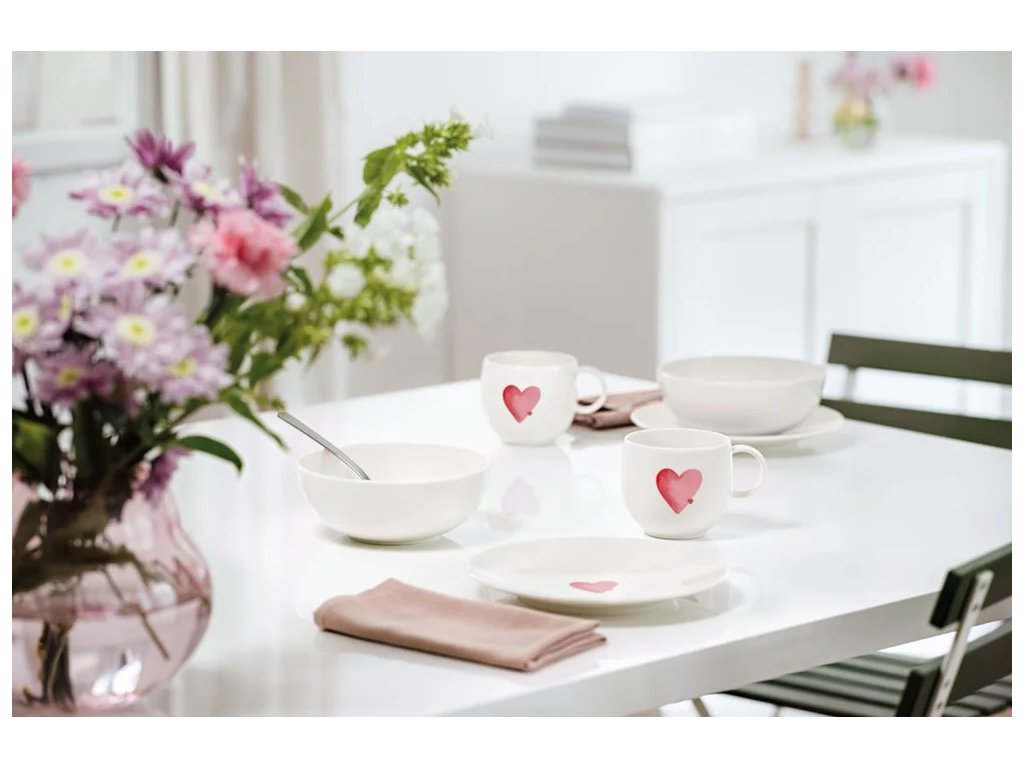 Colecția With Love de la Villeroy & Boch este o celebrare a delicateții, emoției și ritualurilor cotidiene. Porțelanul premium este decorat cu un motiv organic de inimă într-un design în acuarelă care arată ca un detaliu pictat manual. Fiecare piesă poartă o notă de lejeritate, delicatețe și romantică.