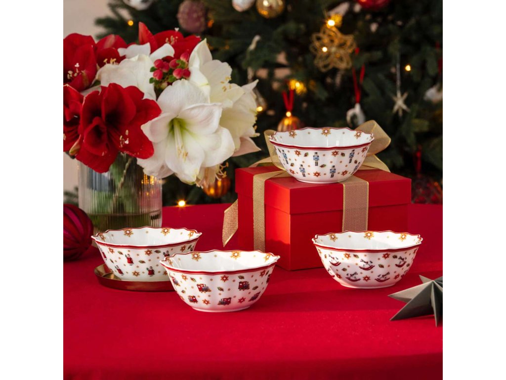 Aduceți magia Crăciunului pe masa dvs. cu colecția Toy's Delight Anniversary de la Villeroy & Boch. Acest set de patru boluri cu motive tradiționale de Crăciun va adăuga o atmosferă festivă oricărei mese și va încânta întreaga familie.