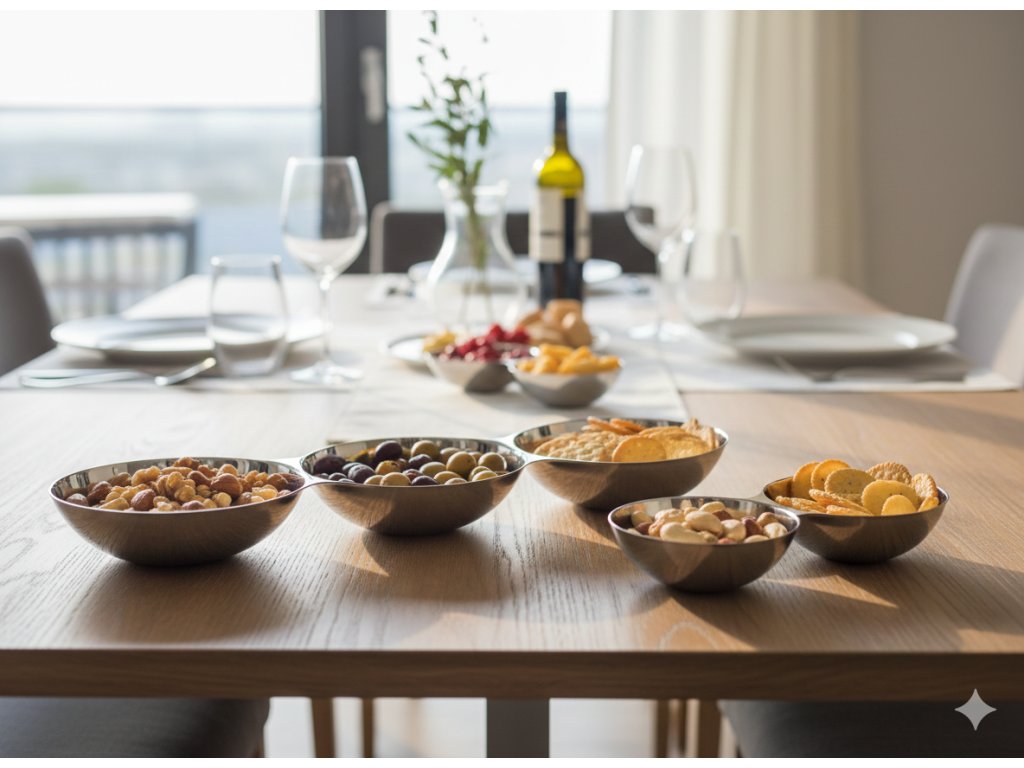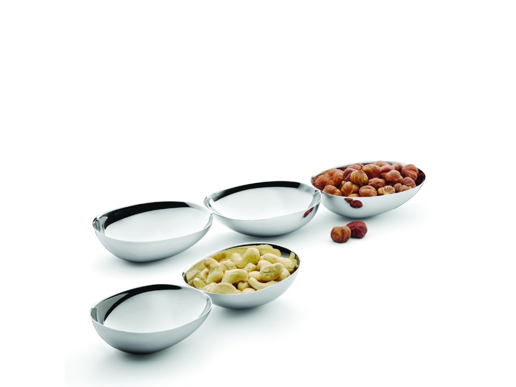 O pereche de boluri de designer de la marca Philippi reprezintă combinația perfectă între eleganță și funcționalitate. Fabricate din oțel inoxidabil lustruit. Setul este ideal pentru servirea nucilor, măslinelor, sosurilor sau mini-deserturi. Conectarea lor într-o singură unitate cu o lungime de 19... cm le face un accesoriu elegant pentru fiecare ocazie festivă și pentru petrecerile de zi cu zi. Forma minimalistă, prelucrarea precisă și strălucirea oțelului transformă fiecare servire într-o mică experiență.