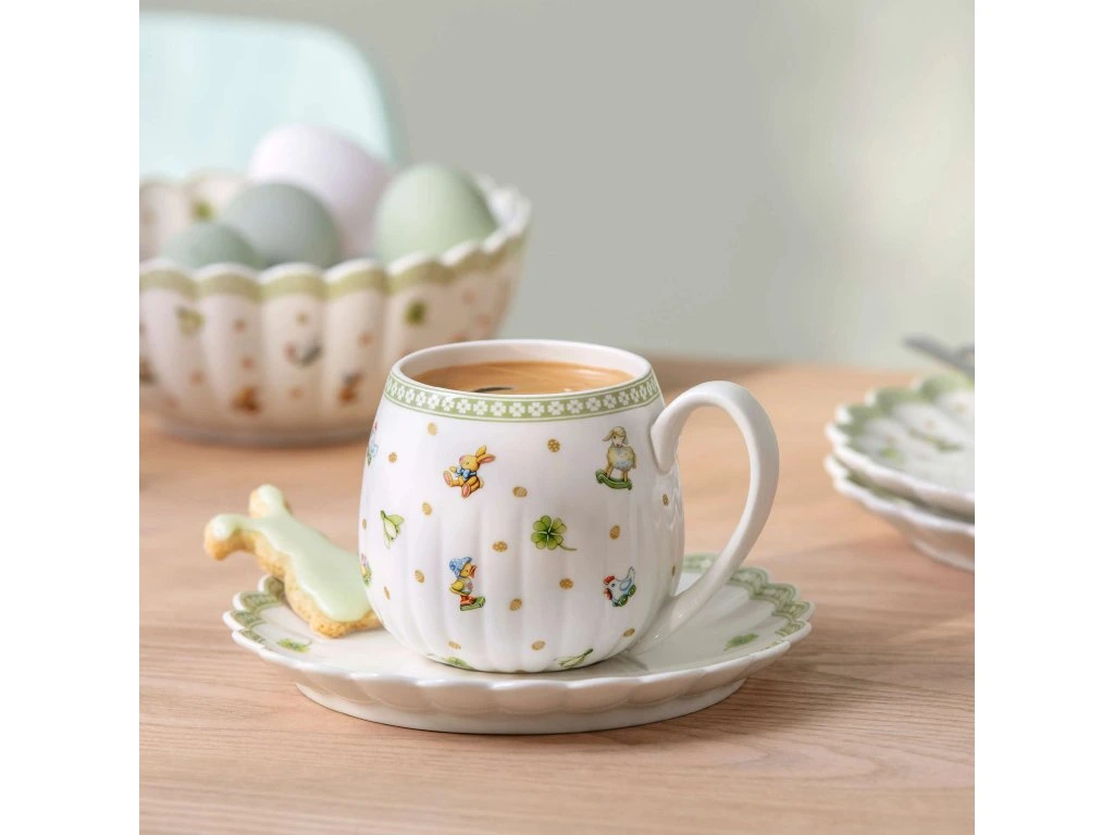 Cana Easter Delight de la Villeroy & Boch va aduce jucăușenie, tandrețe și o atmosferă festivă în zilele dumneavoastră de primăvară. Motivele fermecătoare de Paște, combinate cu o prelucrare precisă, fac din această cană un accesoriu elegant pentru cafeaua de dimineață, ceaiul și momentele de relaxare de după-amiază.