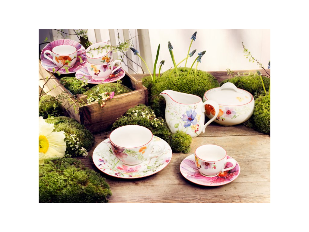 O inundație de flori în culori fine pastelate creează impresia unui tablou impresionist. Colecția Mariefleur Basic de la marca Villeroy & Boch aduce pe masa dvs. ceva extraordinar. Formă elegantă, calitate premium a materialului și un decor deosebit sunt exact acele trăsături, pe care le așteptați de la un serviciu de masă.