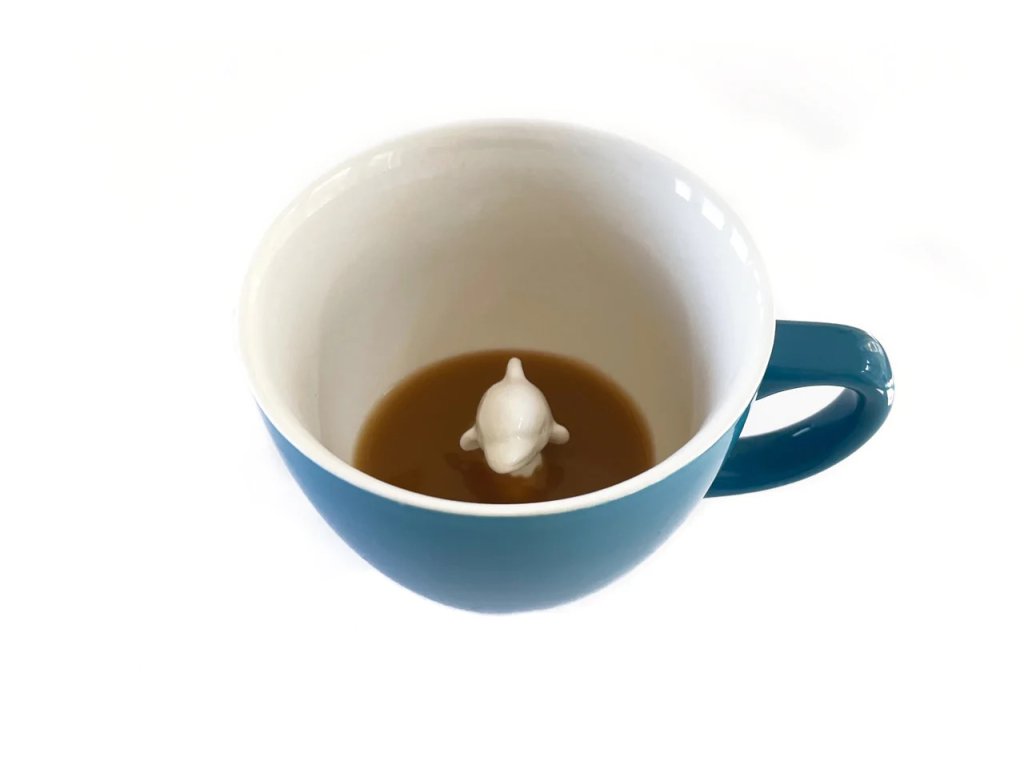 Delfinul este una dintre cele mai inteligente creaturi marine. Nu te uita în altă parte sau ți-ar putea bea toată cana...