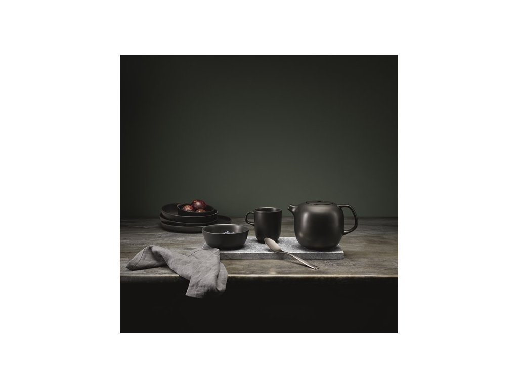 Cana din gresie ceramică în stilul bucătăriei nordice. Design simplu și nuanță caldă de negru, construcție solidă, ceea ce face ca această cană să fie potrivită pentru utilizarea zilnică. O completare potrivită pentru alte produse din seria Nordic Kitchen de la Eva Solo.