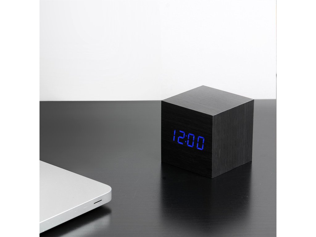 Ceas cu alarmă "Cube Click", negru / albastru - Gingko