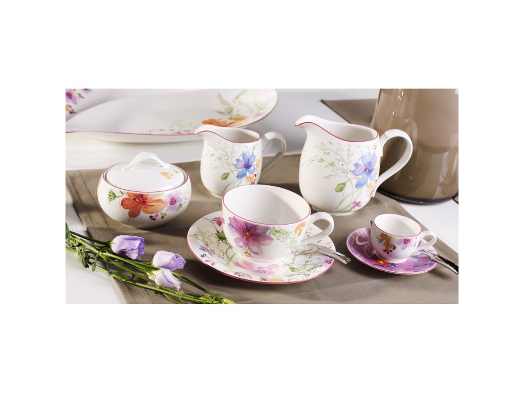 O inundație de flori în culori fine pastelate creează impresia unui tablou impresionist. Colecția Mariefleur Basic de la marca Villeroy & Boch aduce pe masa dvs. ceva extraordinar. Formă elegantă, calitate premium a materialului și un decor deosebit sunt exact acele trăsături, pe care le așteptați de la un serviciu de masă.