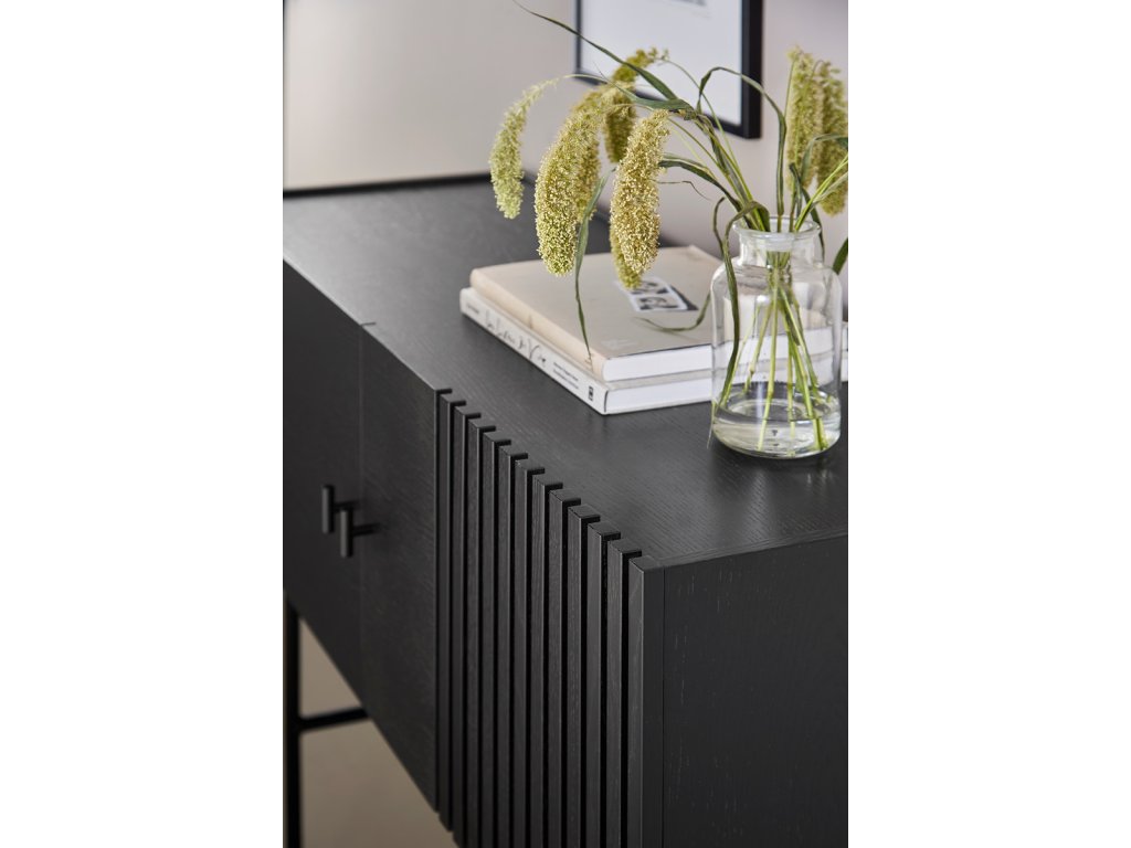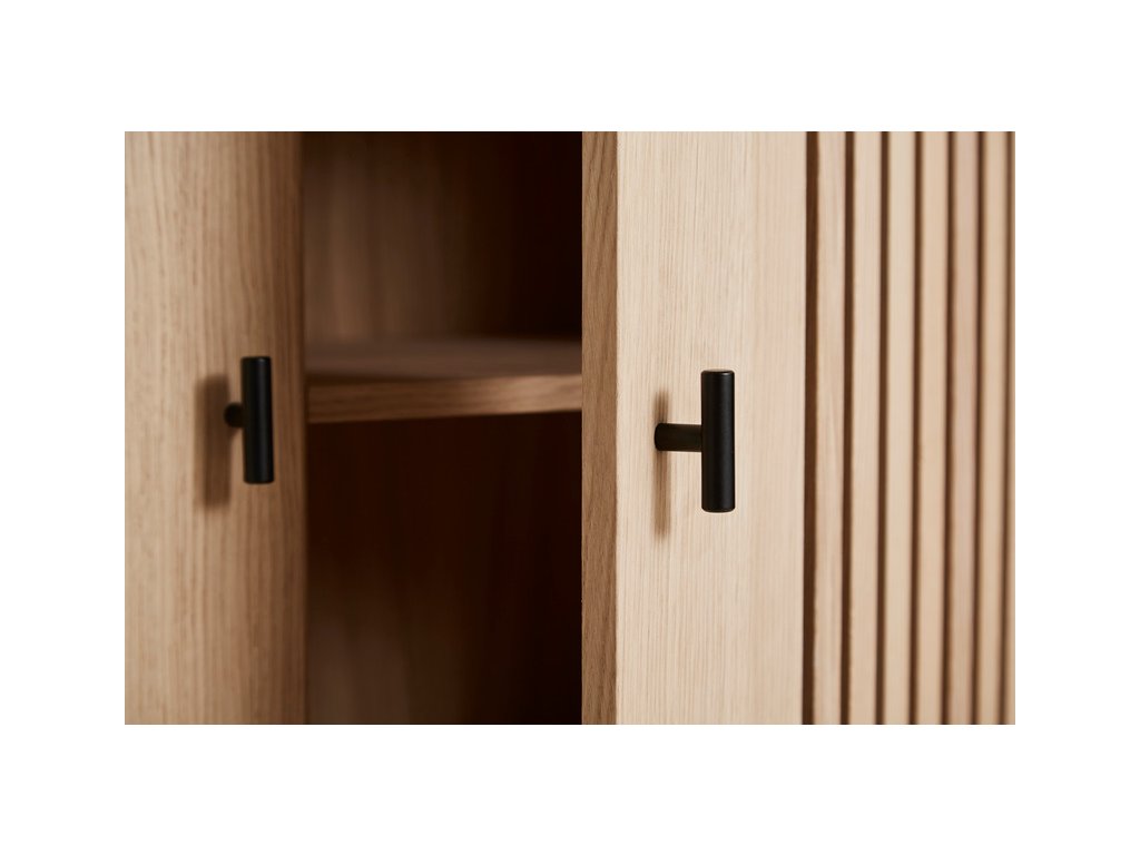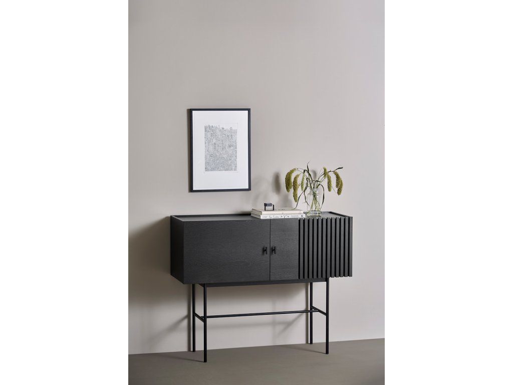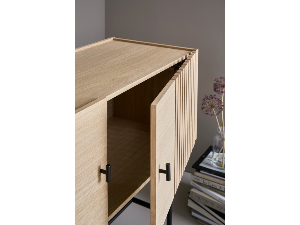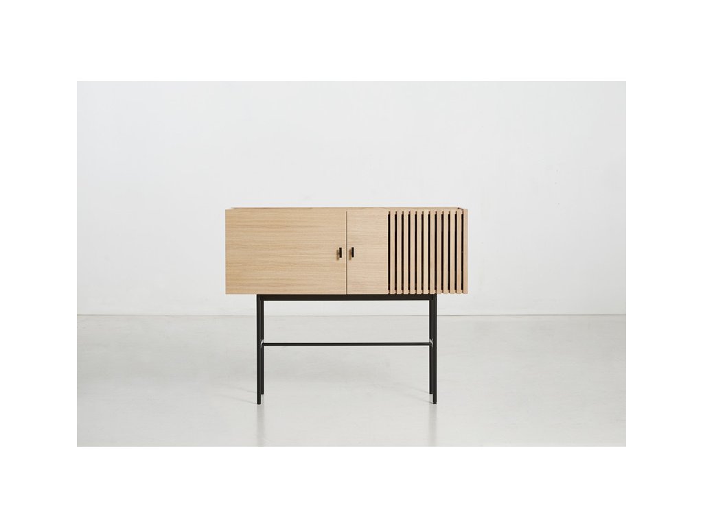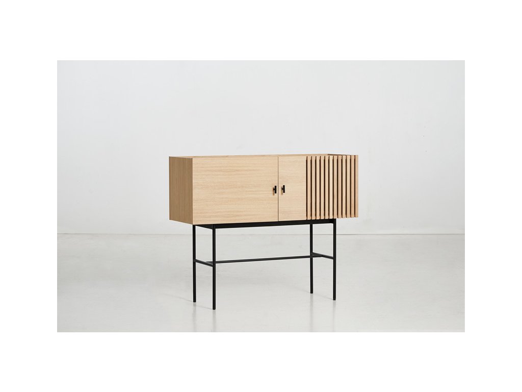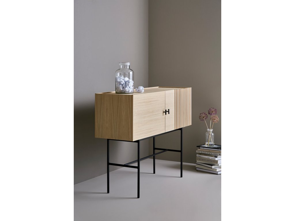 La prima vedere, colecția de comode Array vă va captiva cu contrastul ei neobișnuit între partea superioară masivă din lemn și structura inferioară subțire din metal. Designul este conceput de studioul de design danez Says Who, care a fost fondat de Kasper Meldgaard și Nikolaj Duve. Comodele sunt inspirate din panourile de lemn și ardezie, care pot fi găsite în arhitectura modernă. Datorită formei geometrice și lamelelor orizontale, comodele Array creează o experiență vizuală puternică. Lumina și umbra sunt capturate adânc în lamele, creând iluzia de transparență. Astfel comoda evocă un sentiment de curiozitate, iar dvs. veți dori neapărat să dezvăluiți ceea ce se ascunde în spatele ușii închise. Iar datorită spațiului generos de depozitare, acolo pot încăpea chiar foarte multe lucruri. Comoda este disponibilă în mai multe înălțimi și lățimi, așa că suntem siguri că o veți alege pe cea potrivită pentru dvs. Dar de fapt nu trebuie să rămâneți doar la una, nu?