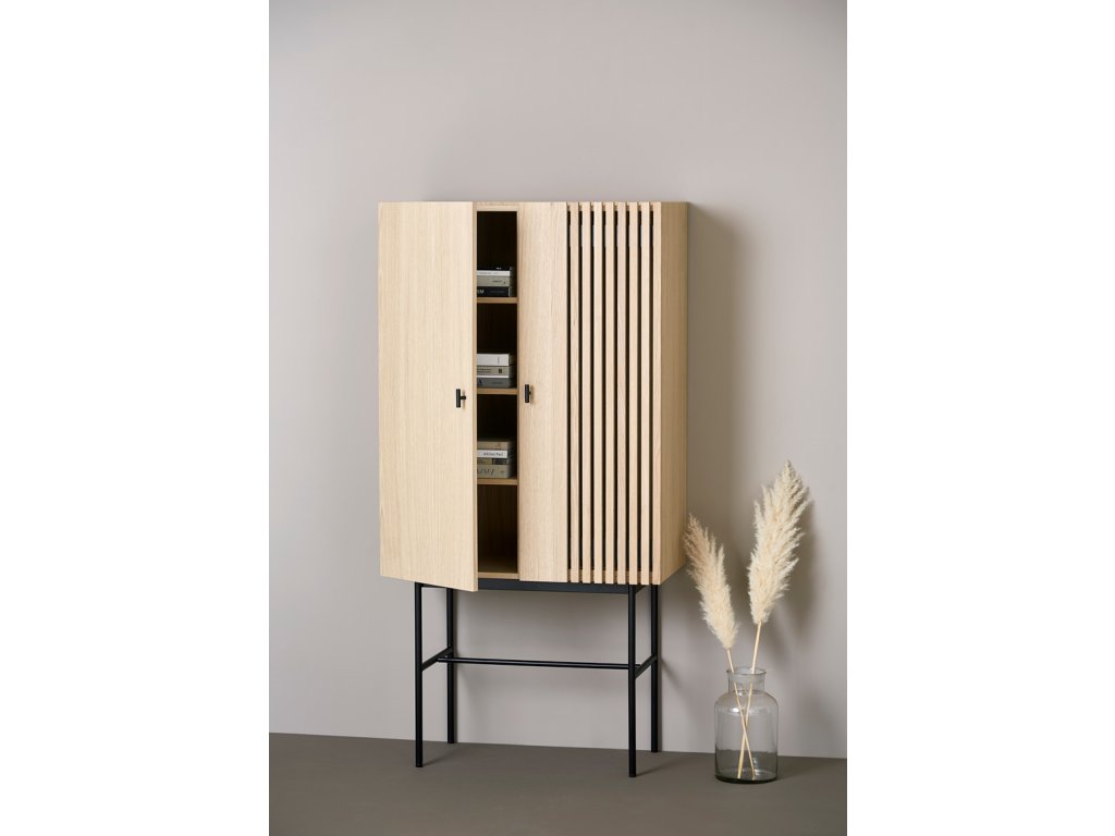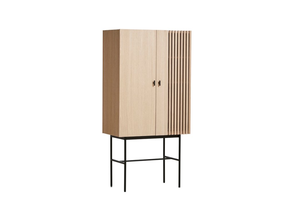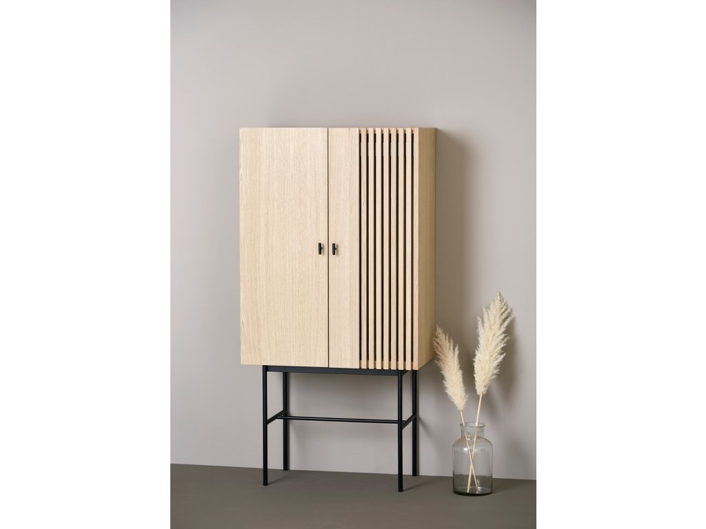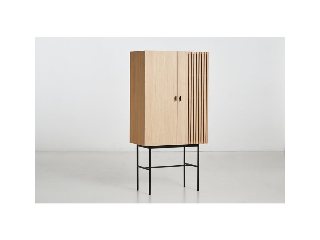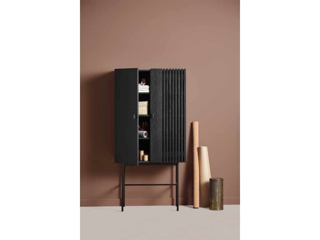 La prima vedere, colecția de comode Array vă va captiva cu contrastul ei neobișnuit între partea superioară masivă din lemn și structura inferioară subțire din metal. Designul este conceput de studioul de design danez Says Who, care a fost fondat de Kasper Meldgaard și Nikolaj Duve. Comodele sunt inspirate din panourile de lemn și ardezie, care pot fi găsite în arhitectura modernă. Datorită formei geometrice și lamelelor orizontale, comodele Array creează o experiență vizuală puternică. Lumina și umbra sunt capturate adânc în lamele, creând iluzia de transparență. Astfel comoda evocă un sentiment de curiozitate, iar dvs. veți dori neapărat să dezvăluiți ceea ce se ascunde în spatele ușii închise. Iar datorită spațiului generos de depozitare, acolo pot încăpea chiar foarte multe lucruri. Comoda este disponibilă în mai multe înălțimi și lățimi, așa că suntem siguri că o veți alege pe cea potrivită pentru dvs. Dar de fapt nu trebuie să rămâneți doar la una, nu-i așa?