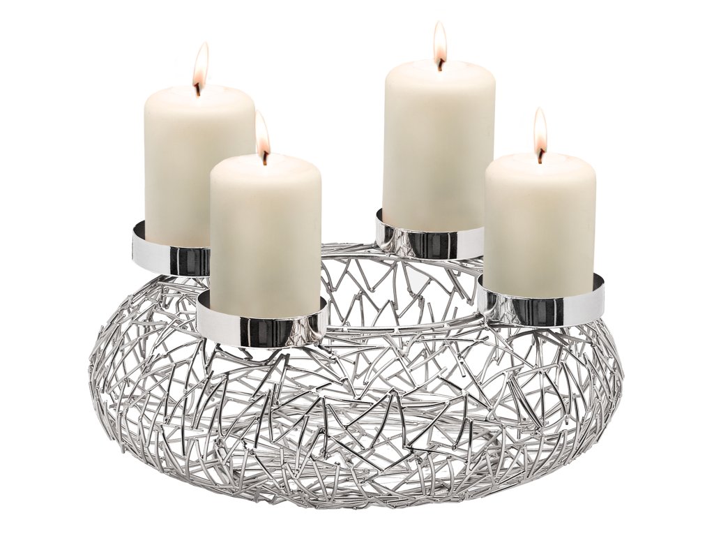 Corpul coroanei nichelate seamănă poetic cu structura fulgilor de zăpadă care cad în spatele ferestrelor, când aprinzi una dintre cele patru lumânări în fiecare duminică din Decembrie pentru a comemora apropierea de Ajunul Crăciunului, pe care îl vei celebra cel mai bine cu această bijuterie sclipitoare care îți va pune în valoare lumânarea cu designul simpatic. Atmosferă de Crăciun.
