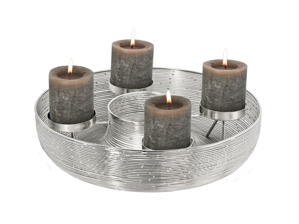 Coronița de Advent Flint din oțel inoxidabil conferă casei d-voastre o atmosferă deosebită de Crăciun. Arată frumos în modul în care a fost concepută, dar poate fi decorată și conform preferințelor d-voastră. În interiorul coroniței pot fi introduse decorațiuni de Crăciun și nu doar. Designul deosebit și delicat împreună cu materialele de primă clasă creează un tot întreg perfect. Acum a rămas doar să aprindeți lumânările și să vă bucurați!