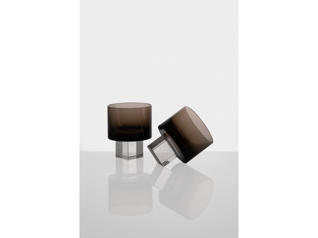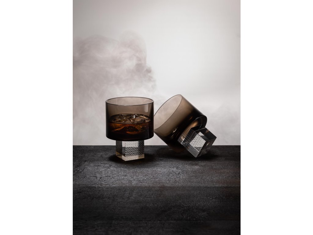 Paharele sunt suflate și tăiate manual. Conexiune unică folosind un adeziv UV invizibil care conectează cuburile gravate manual la sticlă.
