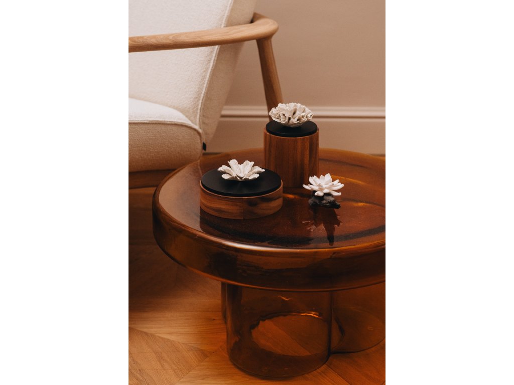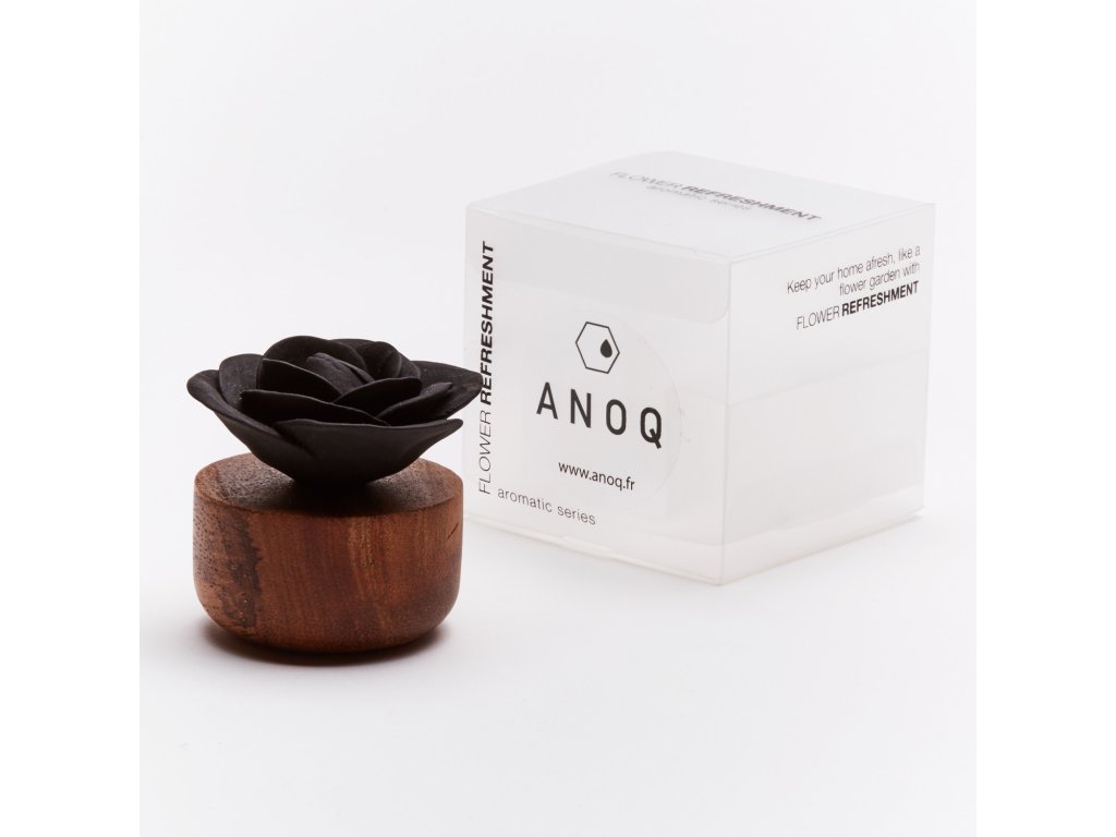 ANOQ este un brand francez de difuzoare de lux care sunt realizate din lemn de salcâm și ceramică poroasă. Fiecare produs este decorat cu o floare originală, pe care trebuie doar să aplicați câteva picături din uleiul esențial preferat. Puteți alege dintr-o gamă largă de flori și culori. Doar adăugați 2-3 picături de ulei esențial pe floare și îl așezați în cameră.