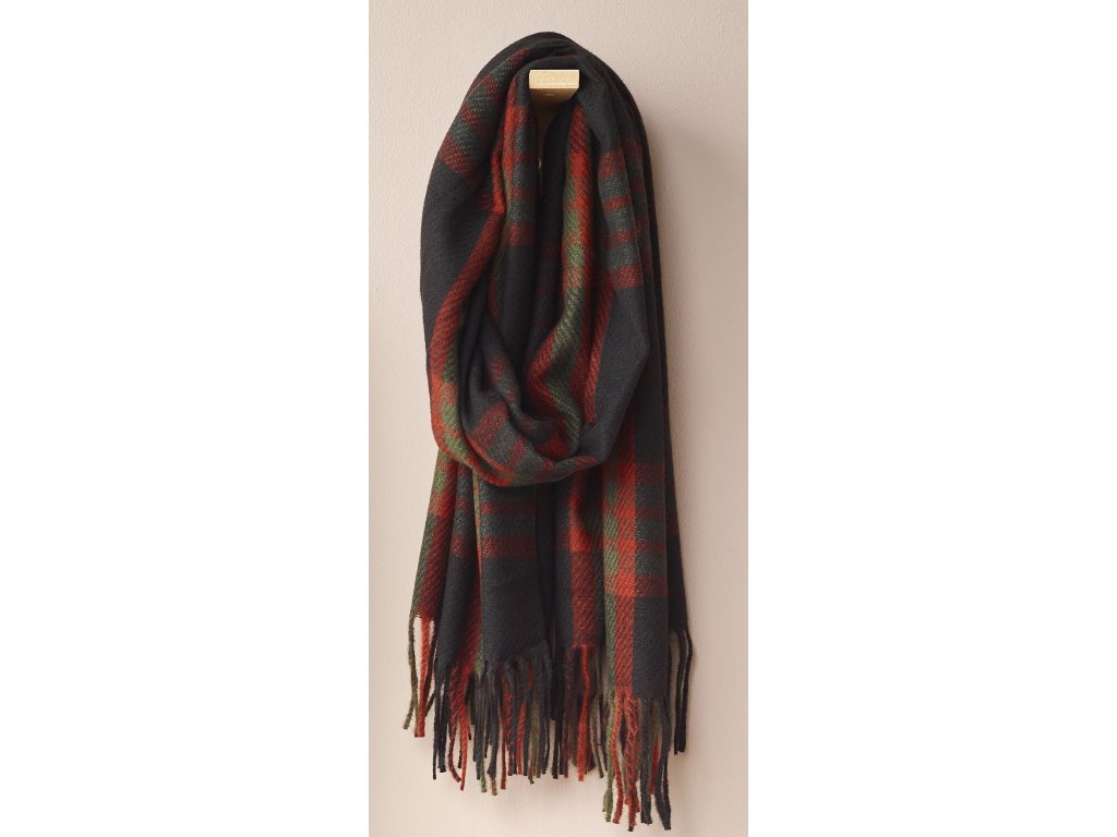Eșarfă Inverness 70x190 pătrată, abanos/verde - Sander