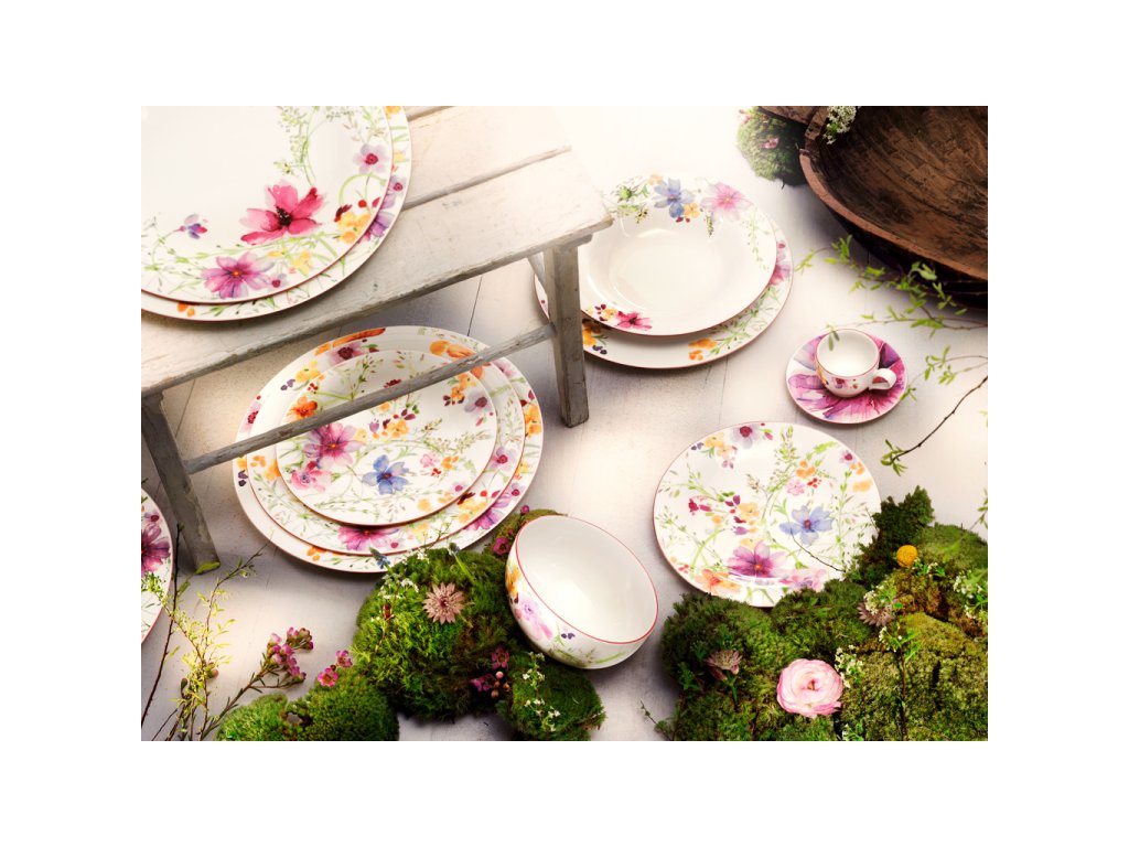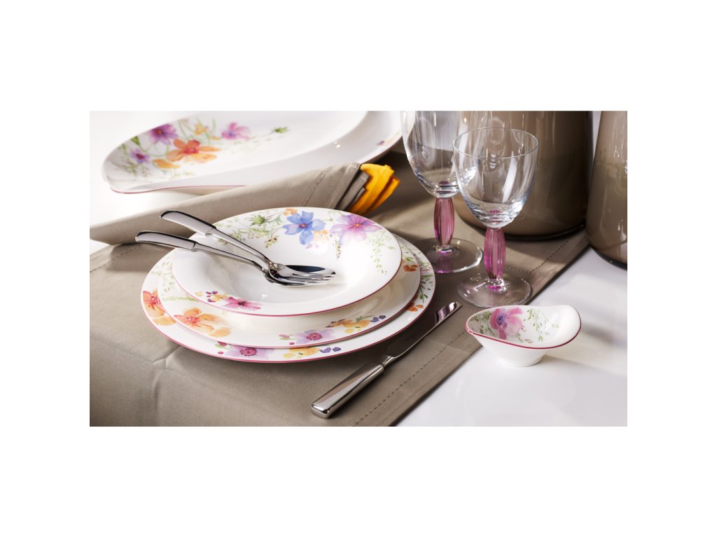 O inundație de flori în culori fine pastelate creează impresia unui tablou impresionist. Colecția Mariefleur Basic de la marca Villeroy & Boch aduce pe masa dvs. ceva extraordinar. Formă elegantă, calitate premium a materialului și un decor deosebit sunt exact acele trăsături, pe care le așteptați de la un serviciu de masă.