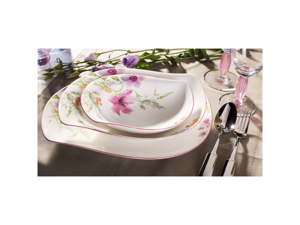 O inundație de flori în culori fine pastelate creează impresia unui tablou impresionist. Colecția Mariefleur Serve & Salad de la marca Villeroy & Boch aduce pe masa dvs. ceva extraordinar. Formă elegantă, calitate premium a materialului și un decor deosebit sunt exact acele trăsături, pe care le așteptați de la un serviciu de masă.
