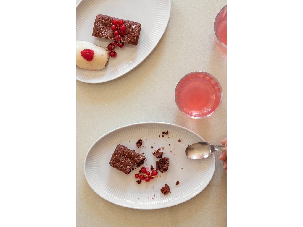 Eleganta farfurie ovală din colecția Legio Nova de la Eva Solo iese în evidență prin decorul său subtil cu caneluri, care conferă mesei un aspect curat și modern. Datorită dimensiunii sale de 24,5 cm, este perfectă pentru servirea garniturilor, deserturilor și felurilor principale mai mici.