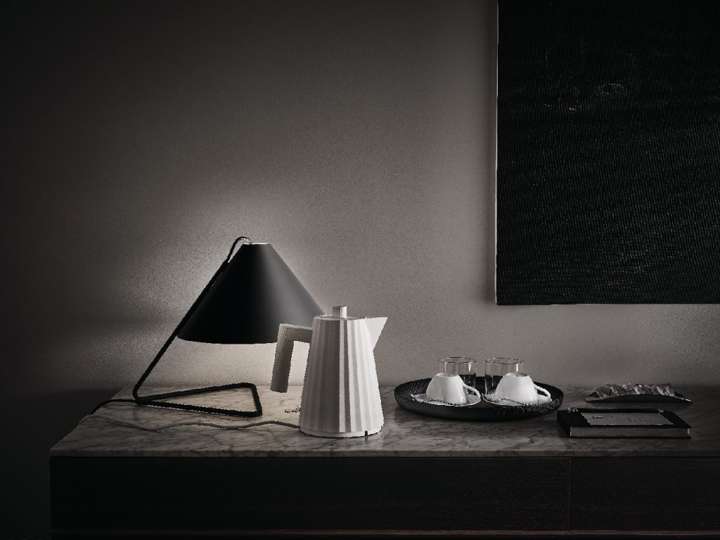 Proeminentul designer italian Michele de Lucchi a proiectat acest fierbător Plissé pentru marca italiană de accesorii premium Alessi. De Lucchi este unul dintre cei mai importanți arhitecți din Italia modernă. Și influențează dezvoltarea designului de mobilier și accesorii pentru locuințe în Europa. The name pentru colecția de ceainice a fost ales cu verhătore pe mestu. La prima vedere a fierbătorului ne închipuim o fustă sau rochie plisată la modă. Suprafața ceanilicelor Plissé este exact pliată și ondulă în acest fel. Acesta este accesoriul de bucătărie pe care îl îmâte tot timpul la îndemână și îl în în în în îndemână î în în în în a fi zi. De aceea vi is offered direct dotarea cu o versiune de design și elegantă a fierbătorului, așa că să vă poote bugă zilnic și să vă decoreze interiorul bucătăriei. Poti alege doua marimi de ceainice: unul mare cu un volum de 1,7 litri si unul mic cu o capacitate de 1 litru. Pentru ambele dimensiuni, puteți alege și dintre variantele elegante de culoare: negru, roșu, gri și alb. Completați-vă bucătăria cu acest fierbător electric unic de la Alessi.