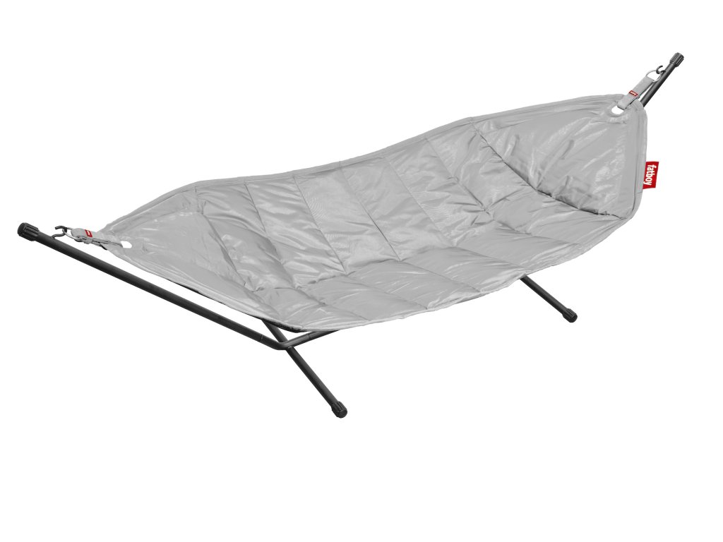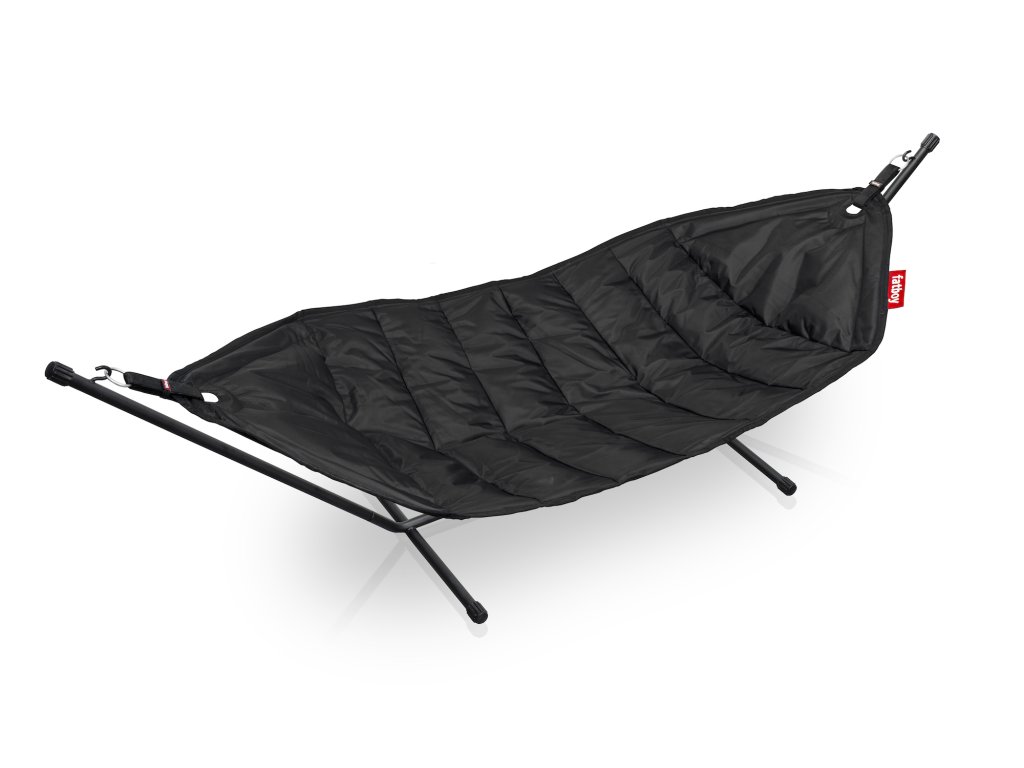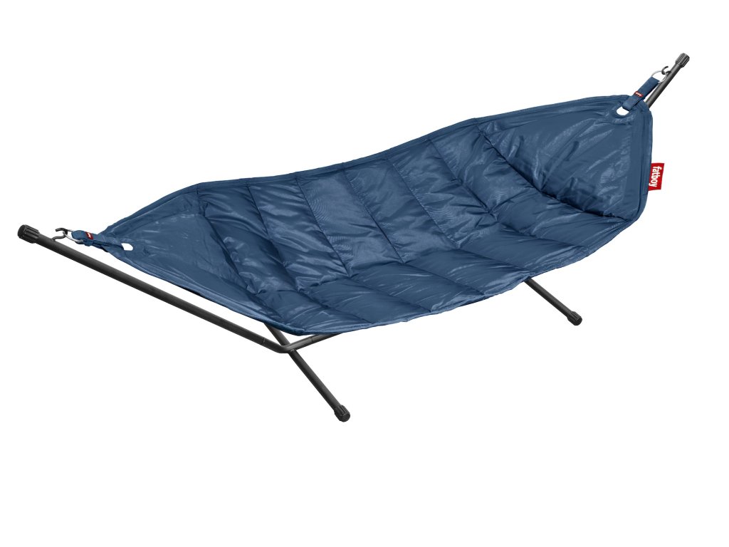 Relaxați-vă și dumneavoastră în hamacul Headdemock, marca Fatboy! Este confecționat din poliester lavabil care respinge apa. În plus, de el vă puteți bucura și împreună cu cineva drag, pentru că suportă o greutate de până la 150 kg. Nu vă rămâne decât să alegeți una din nenumăratele variante de culoare. Eventual puteți alege chiar două, în cazul în care doriți să aveți unul doar pentru dumneavoastră. În timp ce alegeți culoarea, puteți să vă și imaginați unde îl veți instala. Hamacul Headdemock nu necesită pentru montare nici copaci, nici vreun alt stâlp de susținere. Datorită construcției metalice, veți putea să îl instalați oriunde veți dori. Este simbolul relaxării și al bunei dispoziții. Construcția metalică poate fi montată oriunde. Cadrul metalic asigură o stabilitate perfectă, de aceea nu ezitați să chemați lângă dumneavoastră și pe alt membru din familie. Bucurați-vă astfel în liniste de relaxare! Cu acest hamac vă puteți în sfârșit împlini visul și savura odihna perfectă! Indiferent dacă îl veți alege pentru grădină sau terasă, lăsați-vă vrăjiți de sunetele naturii din jur și de legănatul hamacului Headdemock!