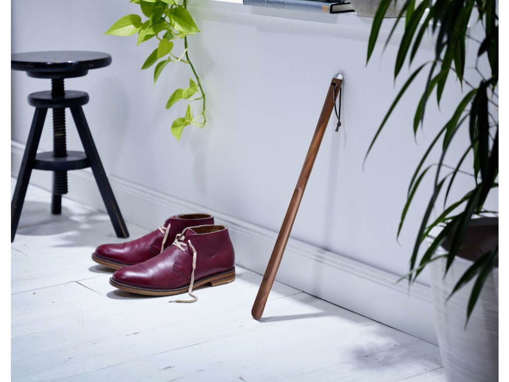 Deja v-ați săturat să fie nevoie să vă aplecați mereu pentru a vă încălța? Și totuși nu ați găsit încă acel încălțător potrivit pentru locuința dumneavoastră? Atunci ar fi bine să faceți cunoștință deja cu încălțătorul WINDSOR, fabricat din lemn de alun în combinație cu oțel inoxidabil, ceea ce îi oferă un farmec deosebit. Ca să nu mai menționăm și bucla practică din piele pentru agățare. Acest încălțător este un accesoriu de bază în holul de la intrare. Linia sa elegantă și execuția de foarte bună calitate te vor convinge că nu merită să te mai chinui aplecându-te atunci când dorești să te încalți.
