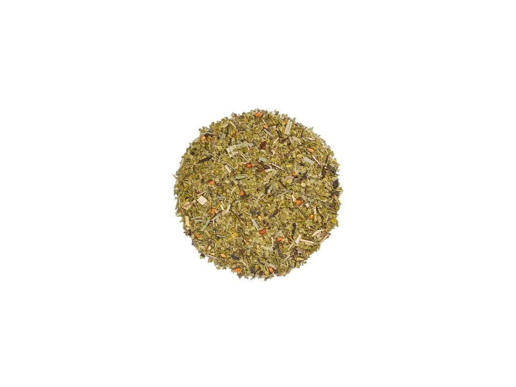 - Un amestec de ceai verde organic cu aromă de mate, lămâie și lemongrass