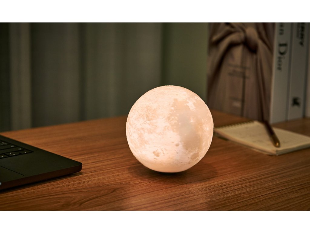 Vă prezentăm lampa „LunaSpin” de la Gingko, o lumină magică pentru fiecare iubitor de spațiu. Lampa cu diametrul de 12 cm este inspirată de frumusețea misterioasă a lunii și este concepută pentru reflecție și fascinație.
