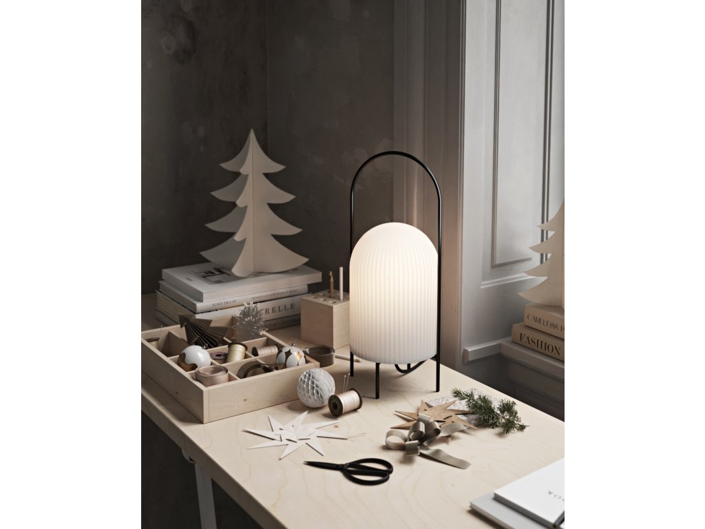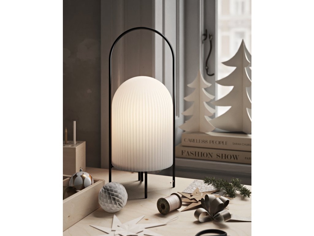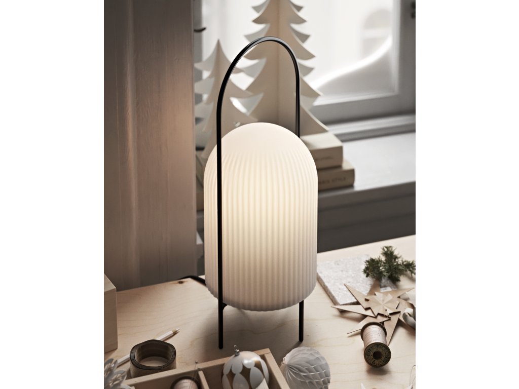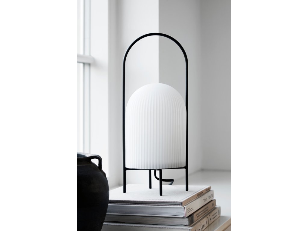 Lampa de masa Ghost este o interpretare moderna a lămpilor de ulei portabile, a lămpilor cu petrol. Construcția metalică protejează abajurul lămpii, iar partea superioară a acestuia servește drept mâner, astfel încât lampa poate fi purtată. Abajurul este realização din vitola opală translucidă, creând iluzia unei țesături albe bărăte peste o sourre de lùgă. Seamănă cu o fantomă prítetoasaasa, care plutește în aer. Suprafața abajurului este decorată cu și caneluri verticale fine, care dispar în sus. Acest lucru uttore foarte subtil caracterul operelor sculpturale, conceivante de designerul german Andreas Kowalski. Kowalski a principe ca tâmplar, iar în calite de designer și în maiestria, în estetice și tehnice deja deprinse, pe care să le combină între ele. Cablul pentru lampă este livrat cu un întrerupător dimabil - variator pentru regularea intensității luminii.