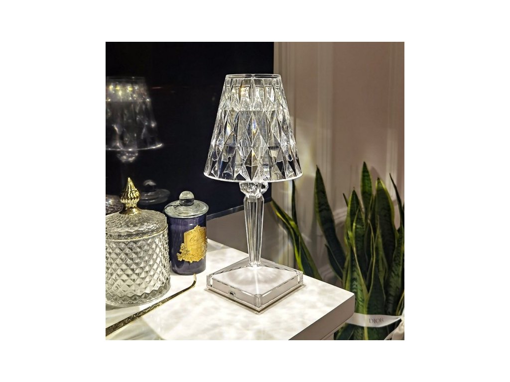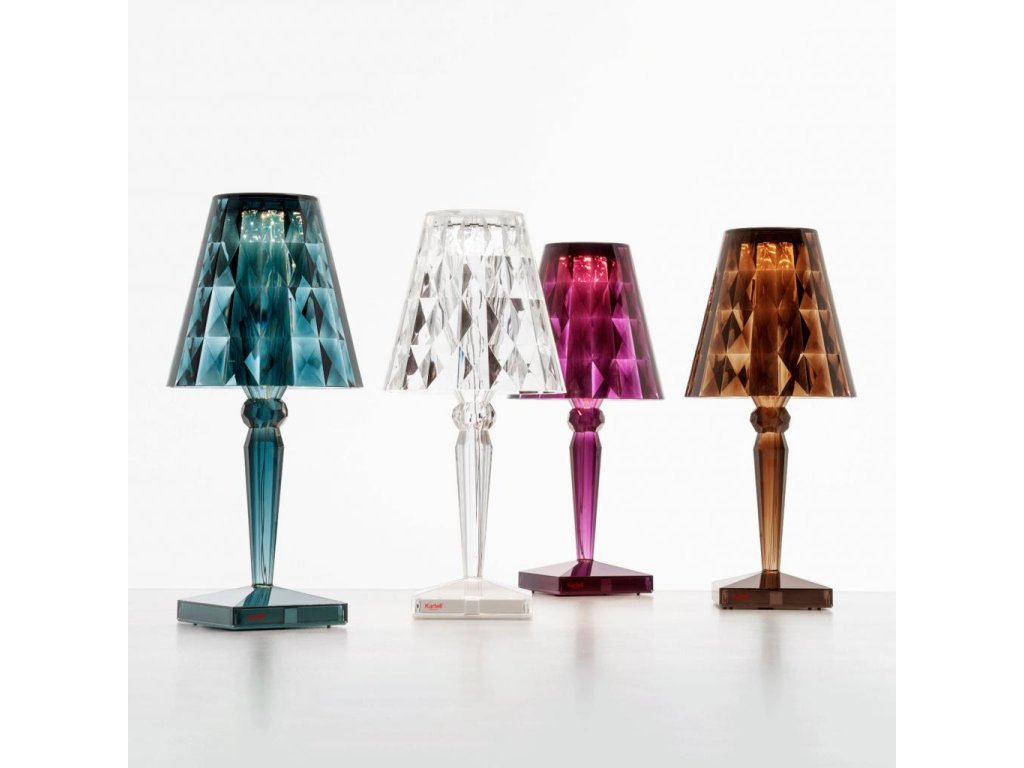 Lampa de masa LED Big Battery , care brălănește ca un diamant Saucă sau piatră prețioasă colorată, a fost creată prin reproiectarea lămpii Laviani. Datorita designului fara brad si autonomie generoase a bateriei, poate fi folosit pana la 8 ore. Nu este doar elegantă, ci și practică.