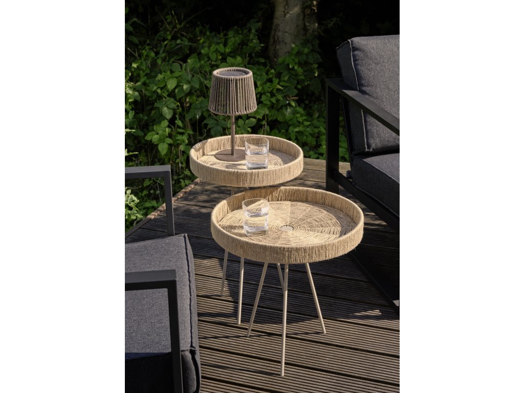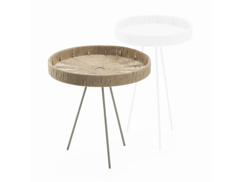 Măsuța laterală joasă Tahiti de la Philippi este o combinație armonioasă între aspectul natural și designul modern - corpul solid din iută este completat de picioare elegante din oțel inoxidabil vopsite în câmp electrostatic. Cu o înălțime de 46 cm și un diametru de 45 cm, este ideală ca un plus elegant pentru o canapea, în sufragerie sau ca element solitar, atât funcțional, cât și estetic. Un accent elegant pentru orice interior.