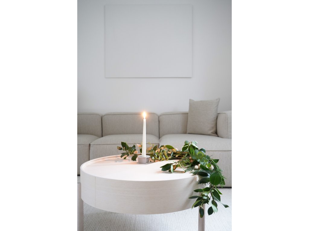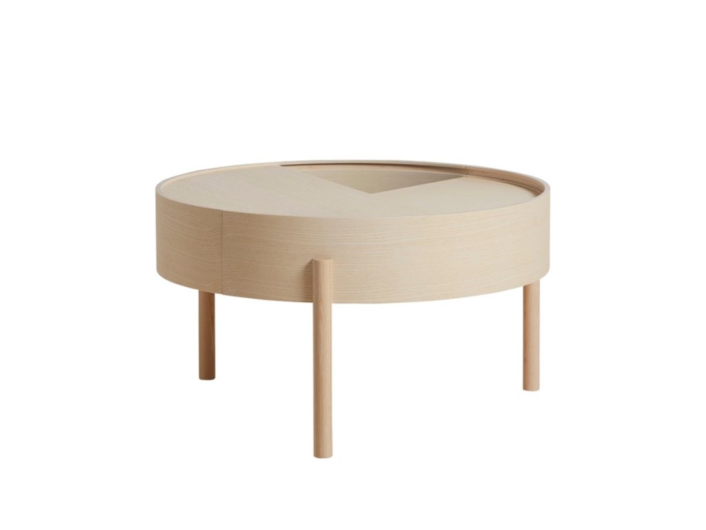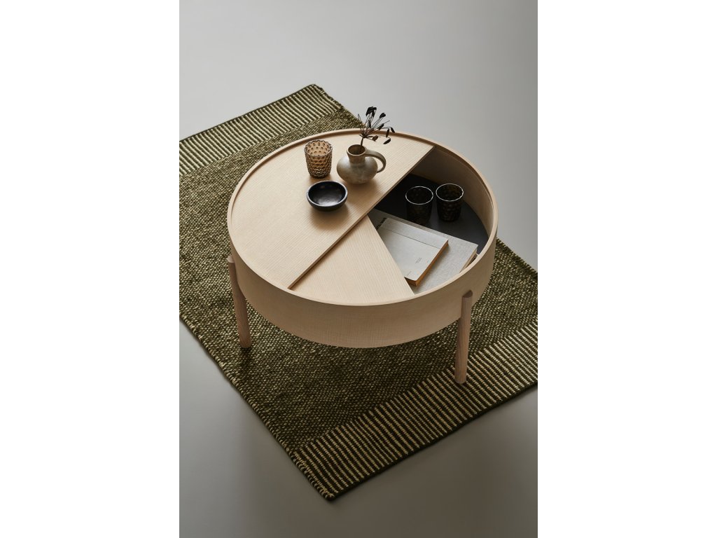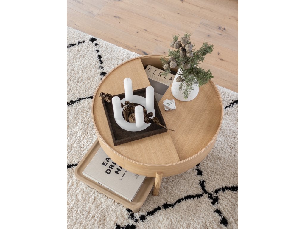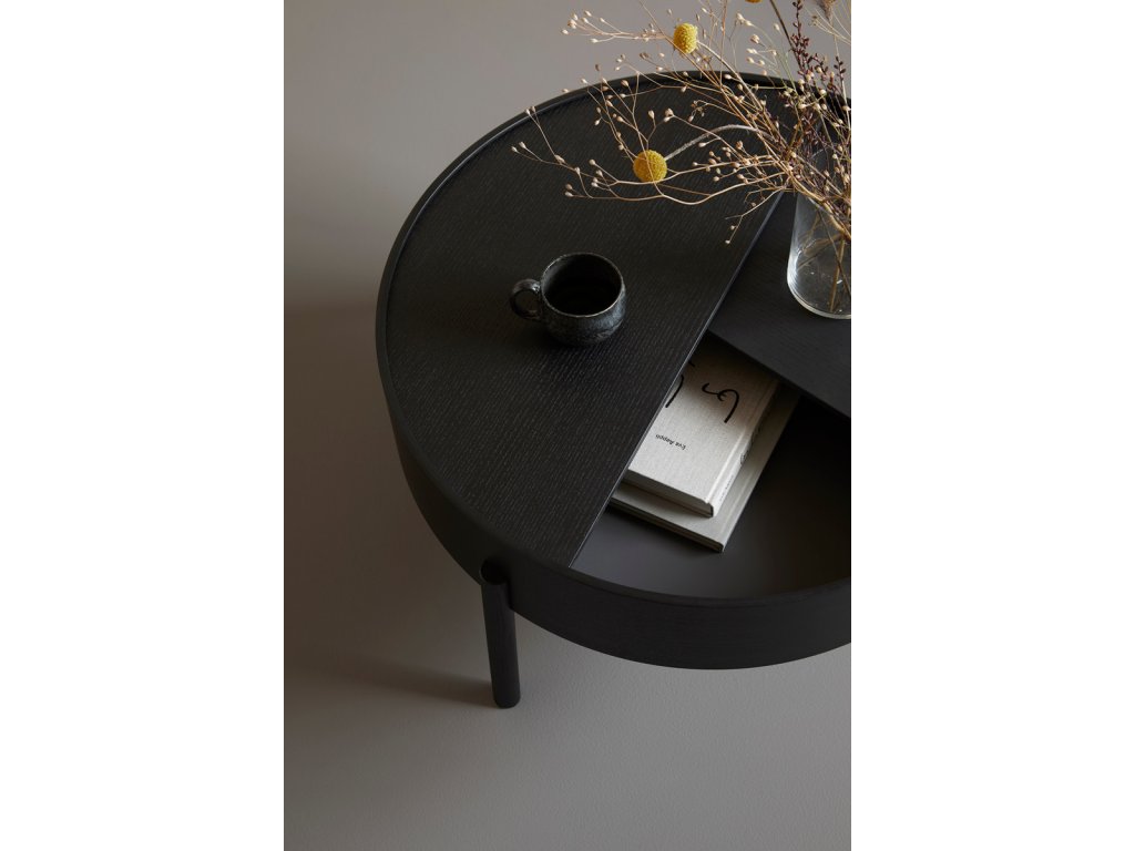 Vă puteți imagina camera de zi fără o măsuță de cafea de calitate și reprezentativă? Noi cu siguranță nu și de aceea avem o soluție pentru dvs. Este vorba despre masa ingenioasă Arc, care combină perfect zona largă de depozitare de deasupra cu un alt spațiu de depozitare, care se află în interiorul mesei. Nu mai trebuie să vă faceți griji de faptul că doar câteva lucruri mici se pot potrivi pe masa dvs. de cafea. Cu mesele Arc puteți avea toate necesitățile la îndemână - telefonul mobil, o carte, o ceașcă de cafea bună, un pahar de vin - orice vă apare în gând. În plus vă puteți păstra ciocolata preferată ascunsă în interiorul mesei, astfel încât nimeni să nu o poată lua. Și atunci când vine o vizită neașteptată puteți foarte ușor să curățați obiectele într-un mod elegant și, cel mai important, rapid în spațiul de depozitare din interiorul mesei. Acesta este acoperit cu nanolaminat fin, care completează perfect lemnul de frasin. Puteți întoarce liber capacul rotund, iar astfel masa dvs. va obține o față nouă oricând doriți. Trebuie doar să faceți rost de acest trepied jucăuș cât mai curând! Măsuța de cafea, concepută de designerii Julie Begtrup și Ditte Vad, este disponibilă în două variante de culori - deschisă și închisă. Deci, hotărâți-vă cât mai repede, pentru că această măsuță de cafea nu ar trebui să vă lipsească nici un minut.