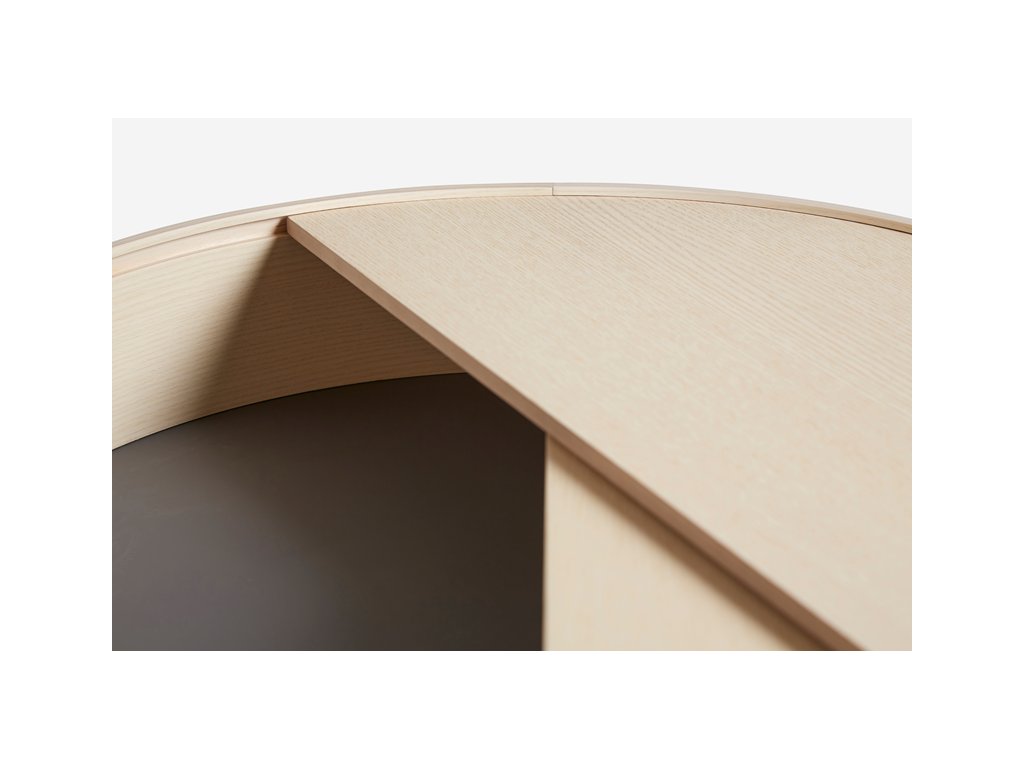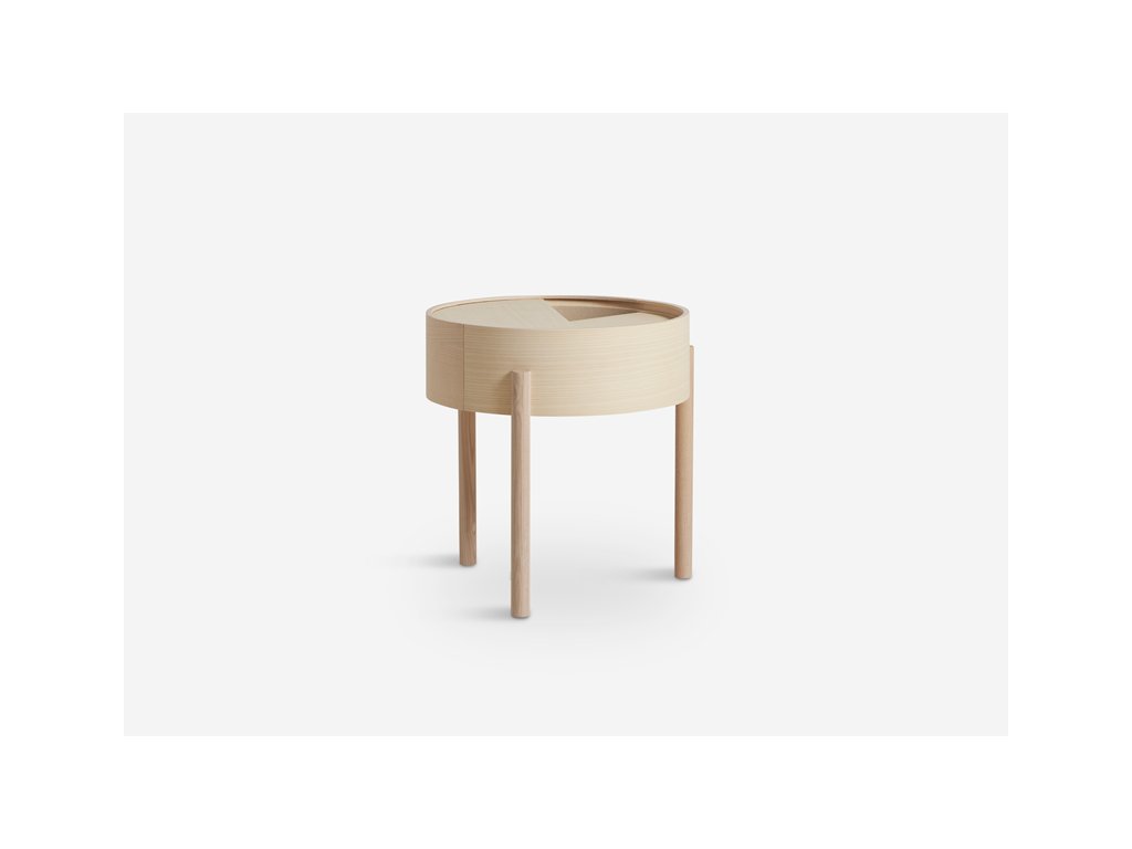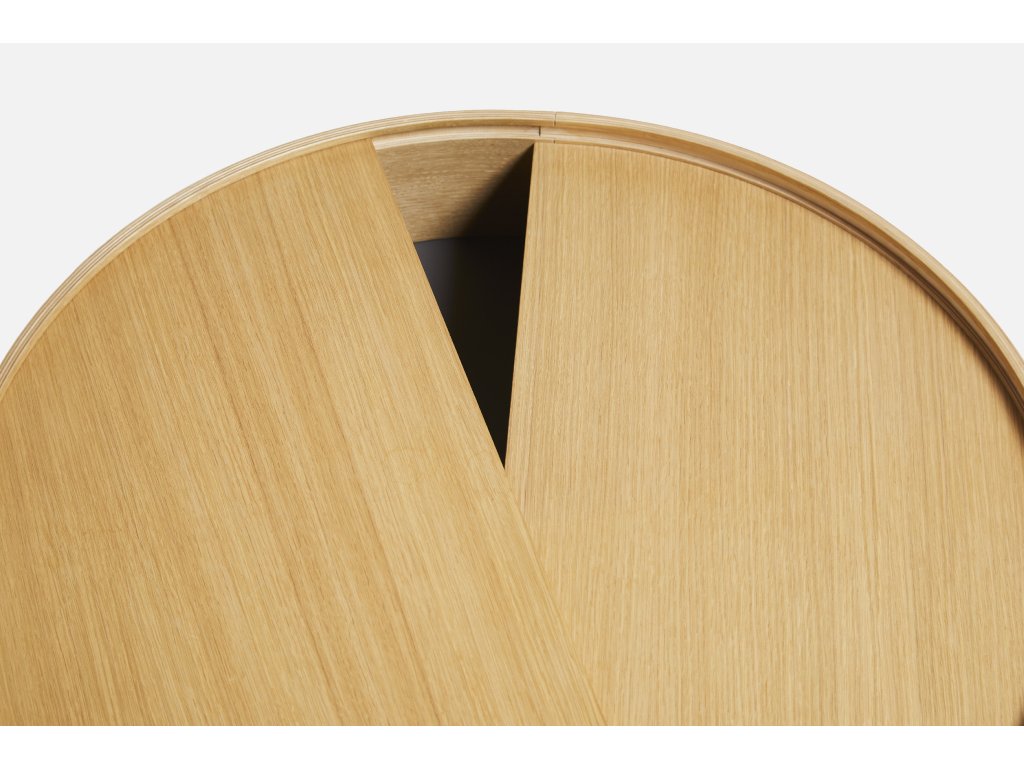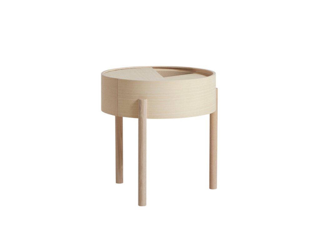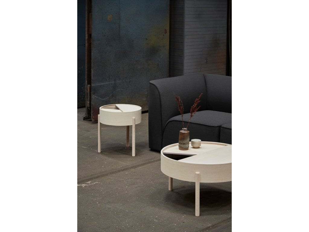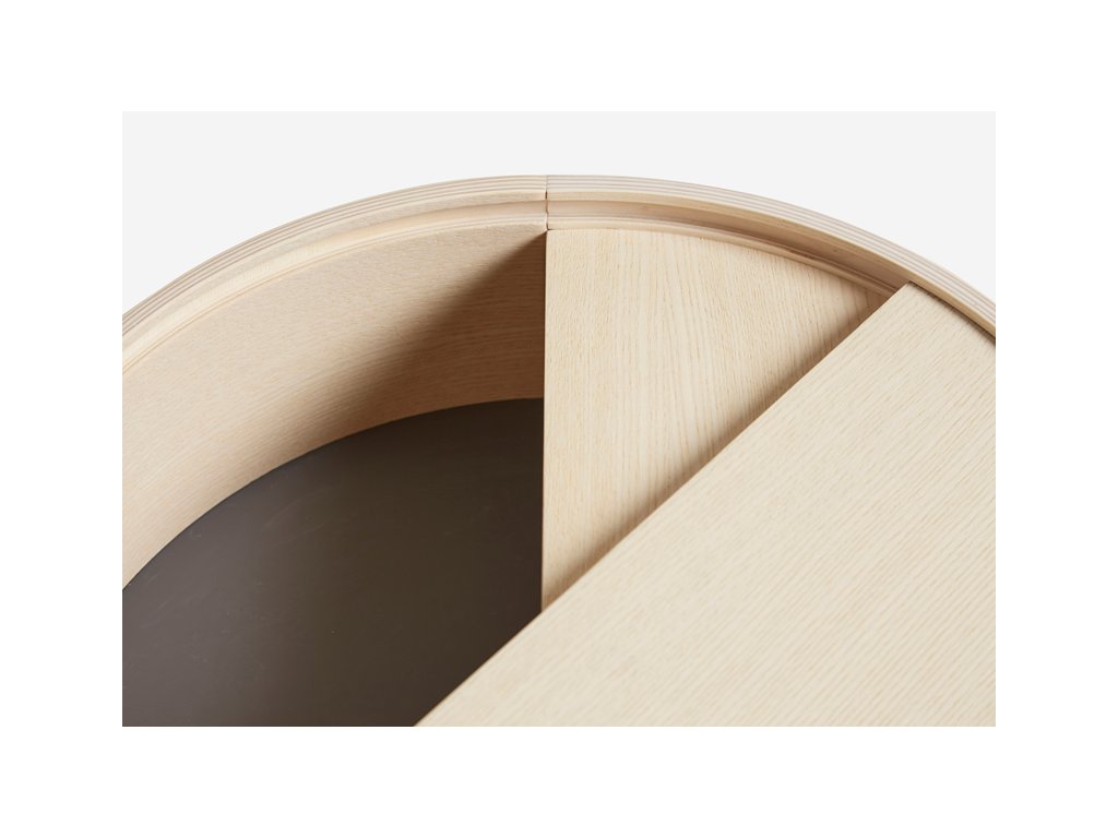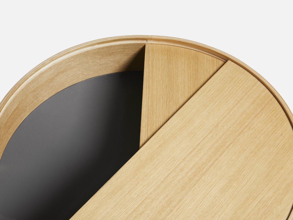 Vă puteți imagina camera de zi fără o măsuță laterală de calitate și reprezentativă? Noi cu siguranță nu și de aceea avem o soluție pentru dvs. Este vorba despre masa ingenioasă Arc, care combină perfect zona largă de depozitare de deasupra cu un alt spațiu de depozitare, care se află în interiorul mesei. Nu mai trebuie să vă faceți griji de faptul că doar câteva lucruri mici se pot potrivi pe masa dvs. laterală. Cu mesele Arc puteți avea toate necesitățile la îndemână - telefonul mobil, o carte, o ceașcă de cafea bună, un pahar de vin - orice vă apare în gând. În plus vă puteți păstra ciocolata preferată ascunsă în interiorul mesei, astfel încât nimeni să nu o poată lua. Și atunci când vine o vizită neașteptată puteți foarte ușor să curățați obiectele într-un mod elegant și, cel mai important, rapid în spațiul de depozitare din interiorul mesei. Acesta este acoperit cu nanolaminat fin, care completează perfect lemnul de frasin. Puteți întoarce liber capacul rotund, iar astfel masa dvs. va obține o față nouă oricând doriți. Trebuie doar să faceți rost de acest trepied jucăuș cât mai curând! Masa Arc, concepută de designerii Julie Begtrup și Ditte Vad, este disponibilă în două variante de culori - deschisă și închisă. Deci, hotărâți-vă cât mai repede, pentru că această măsuță nu ar trebui să vă lipsească nici un minut.