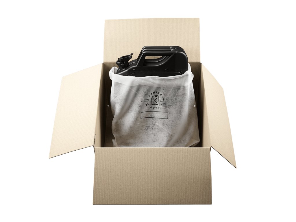 Brandul Danish Fuel a achiziționat canistrele din surplusurile de la depozitele militare sau colecții private. Acestea sunt canistre uzate numite Jerry Can. Procesul de reciclare ascendentă (adică insuflarea unei vieți noi și mai bune pentru un obiect deja retras) are loc în Danemarca la un standard ridicat în ceea ce privește protecția mediului..