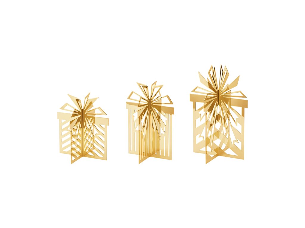 Acest set exclusivist de trei ornamente de Crăciun Georg Jensen este îmbinarea perfectă între minimalismul scandinav și măiestria luxoasă. Fiecare piesă este finisată manual și placată cu aur de 18 karate, care strălucește cu un luciu cald, festiv.