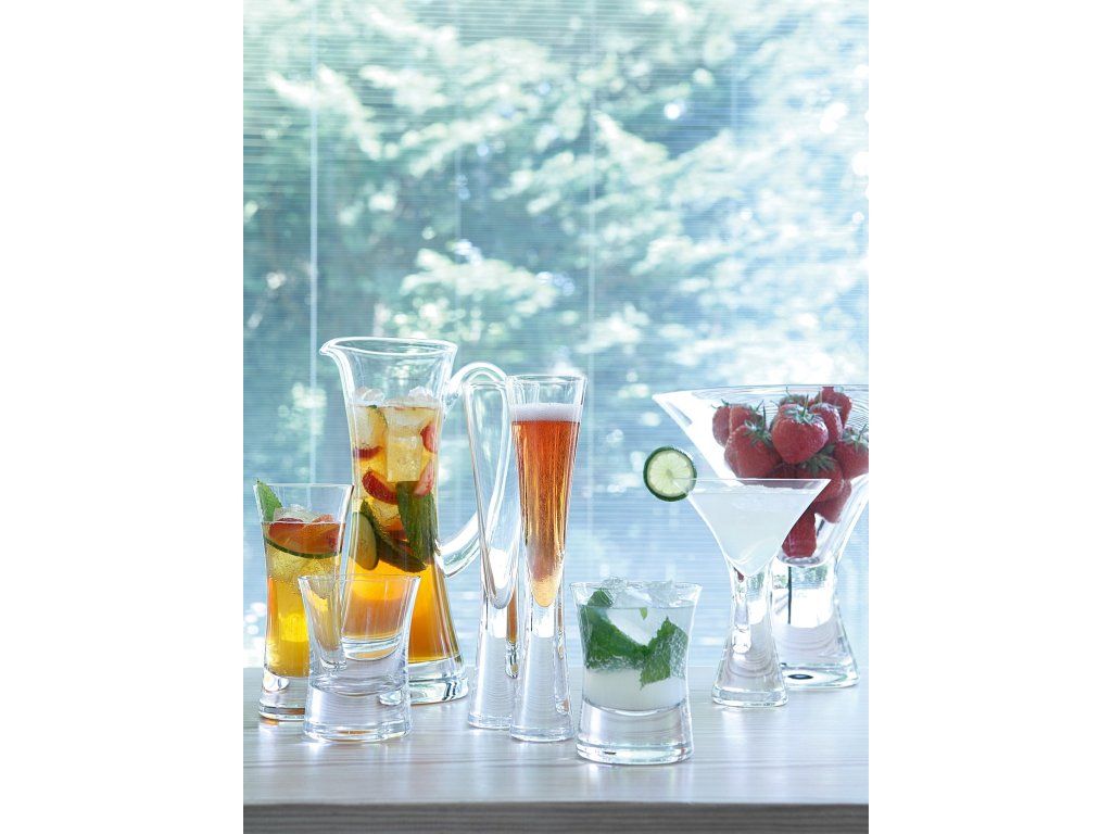 Când spui cocktail, imaginează-ți un pahar cu gâtul larg, o cireașă sau o felie de lămâie pe marginea paharului. Când au creat aceste pahare cei de la LSA, au decis să le facă speciale cu un picior suport mai larg și neconvențional, care va completa frumos restul produselor din colecția Moya. În acest pahar de cocktail vă veți bucura atât de vederea unei băuturi colorate, cât și de aroma sa, care se dezvoltă frumos datorită gâtului său larg. Paharele sunt lucrate manual din sticlă suflată.