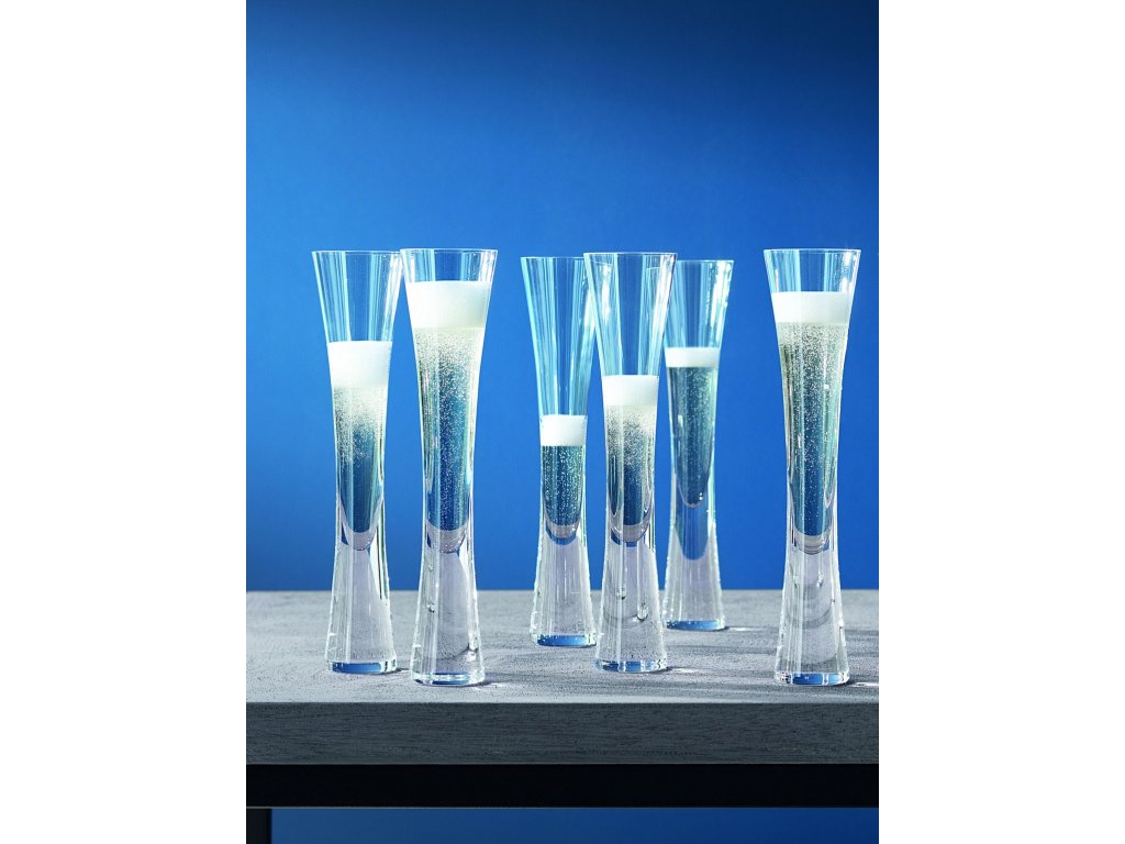 Turnarea șampaniei este asociată cu ocazii speciale, cum ar fi nunți și petreceri de zile de naștere. Ar trebui să savurăm vinul spumant în mod corespunzător imediat după deschidere și turnare peste peretele unui pahar mai înalt. Paharele lungi în formă de flaut sunt ideale pentru a ne bucura ochii cu frumoasele mărgele de bule. Spre deosebire de clasicele pahare înguste, aceste pahare de la LSA din colecția Moya au gâtul ușor lărgit, iar datorită acestui lucru vă veți bucura și de aroma șampaniei, care se dezvoltă frumos. Paharele sunt realizate manual din sticlă suflată.