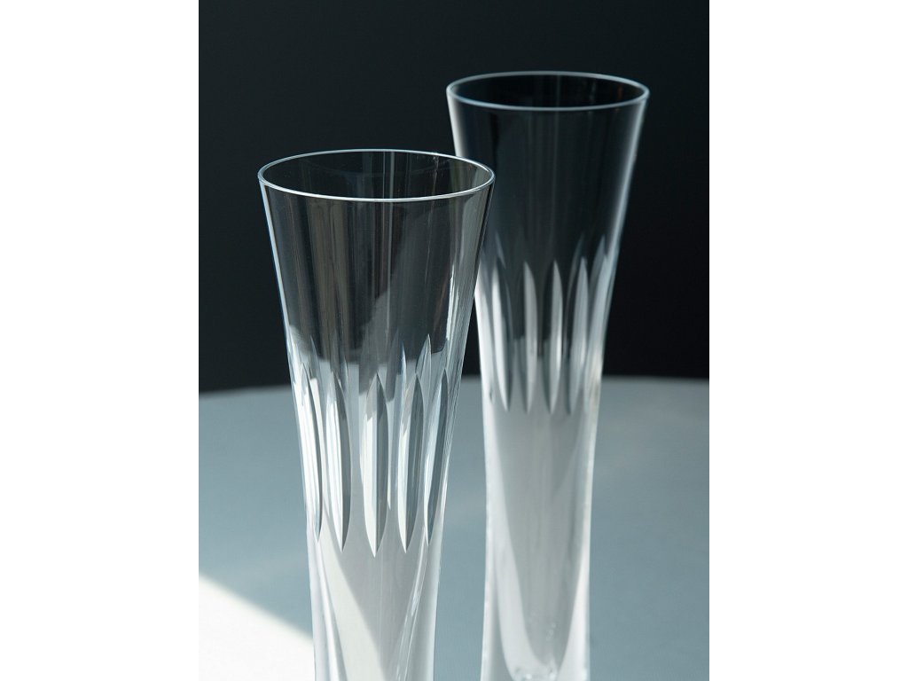 Turnarea șampaniei este asociată cu ocazii speciale, cum ar fi nunți și petreceri de zile de naștere. Ar trebui să savurăm vinul spumant în mod corespunzător imediat după deschidere și turnare peste peretele unui pahar mai înalt. Paharele lungi în formă de flaut sunt ideale pentru a ne bucura ochii cu frumoasele mărgele de bule. Spre deosebire de clasicele pahare înguste, aceste pahare de la LSA din colecția Moya au gâtul ușor lărgit, iar datorită acestui lucru vă veți bucura și de aroma șampaniei, care se dezvoltă frumos. Paharele sunt lucrate manual, din sticlă suflată și la suprafață există decorațiuni realizate manual sub formă de tăieturi în pahar, care vor crea un efect interesant după umplere.