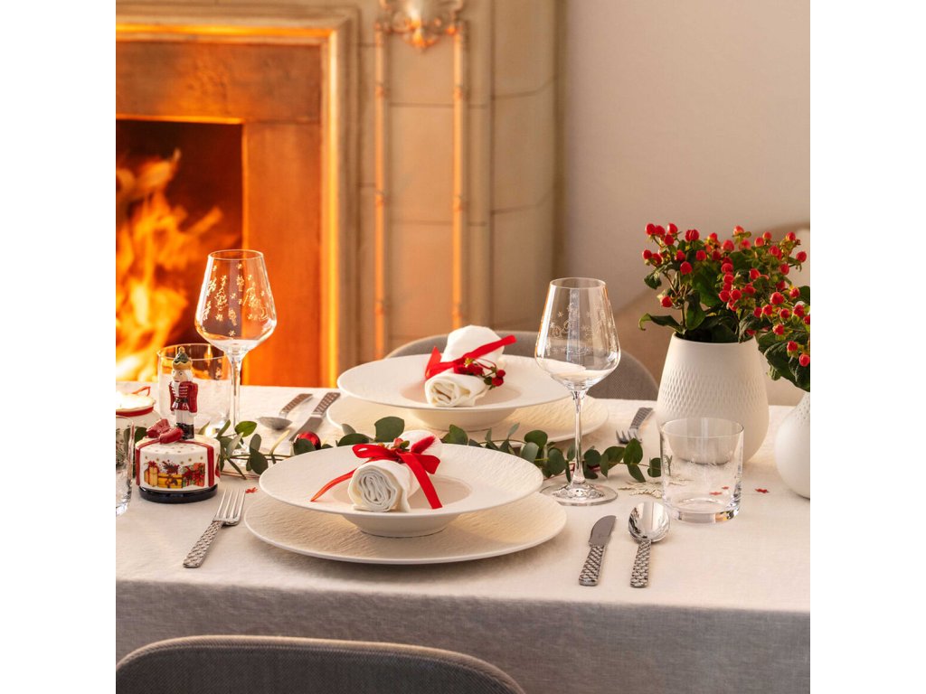Colecția Toy's Delight de la compania germană Villeroy&Boch este esența Crăciunului și a atmosferei de Crăciun, pe care designerii le-au împletit literalmente în toate cele trei produse frumoase de care colecția este mândră. Ce ar putea evoca mai mult timpul Crăciunului decât un brad împodobit, plin de lumini, pe care cad încet fulgi de zăpadă albi? Puteți găsi acest motiv și alte motive pe suporturi de farfurie unice, realizate din 70% bumbac, în două variante de culoare - alb-roșu și roșu-verde - sau pe materialul pentru șervete de bucătărie, cu ajutorul cărora veți obține la masă o notă festivă fermecătoare, datorită căreia vă veți bucura de o cină de Crăciun în familie la o masă decorată magic.