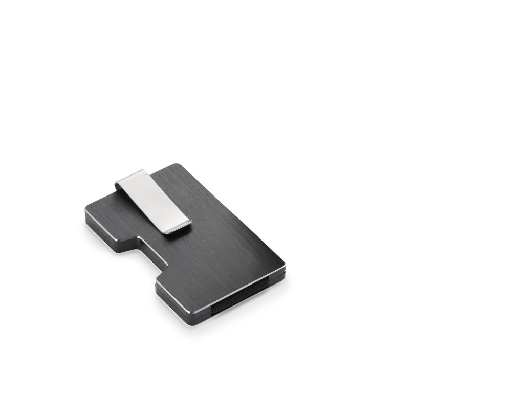 Acest suport deosebit de subțire pentru cărți de credit este realizat din aluminiu. Datorită elasticului integrat este posibil să fie folosit pentru un număr mare de cărți de credit. O parte componentă a acestui suport este și clipsul pentru bancnote. Suportul beneficiază de protecție RFID (Radio-Frequency Identification). Este disponibil în culorile gri și neagră și poate fi cu succes dăruit unui bărbat cu pretenții.