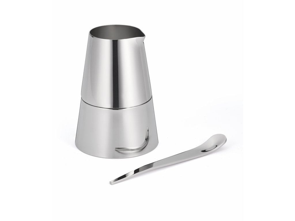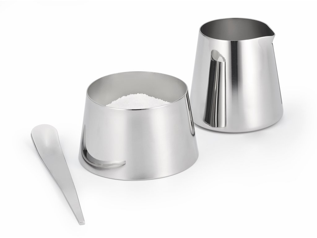 Setul din 3 piese din oțel inoxidabil CREAM este dedicat în primul rând ingredientelor de bază care însoțesc o cafea sau un ceai bun. Setul conține un recipient pentru lapte,o zaharniță și o linguriță care împreună clădesc un mic turnuleț. Recipientul pentru lapte constituie etajul superior, sub el se află zaharnița.