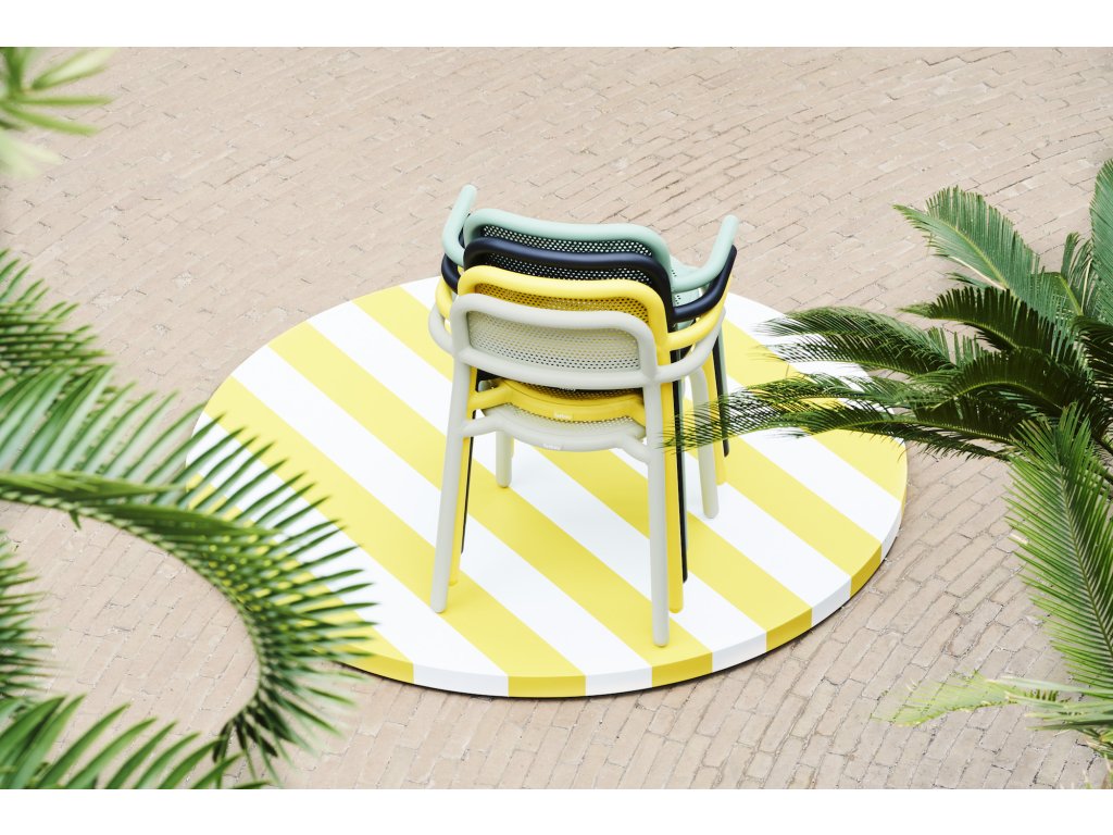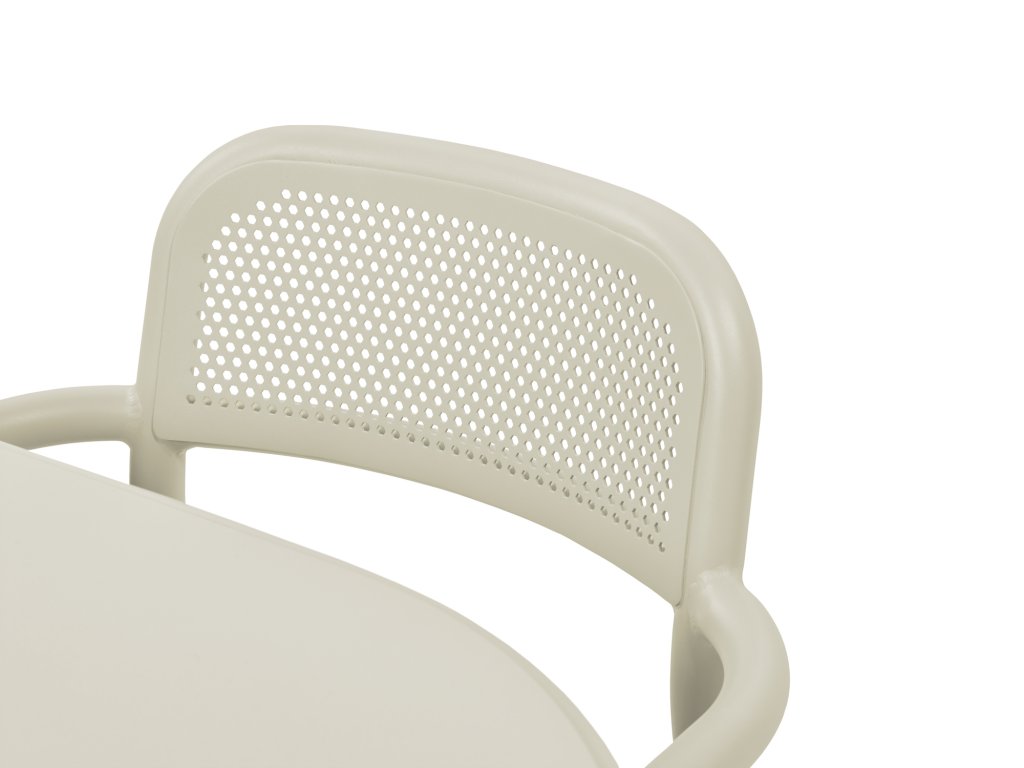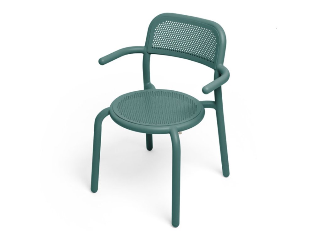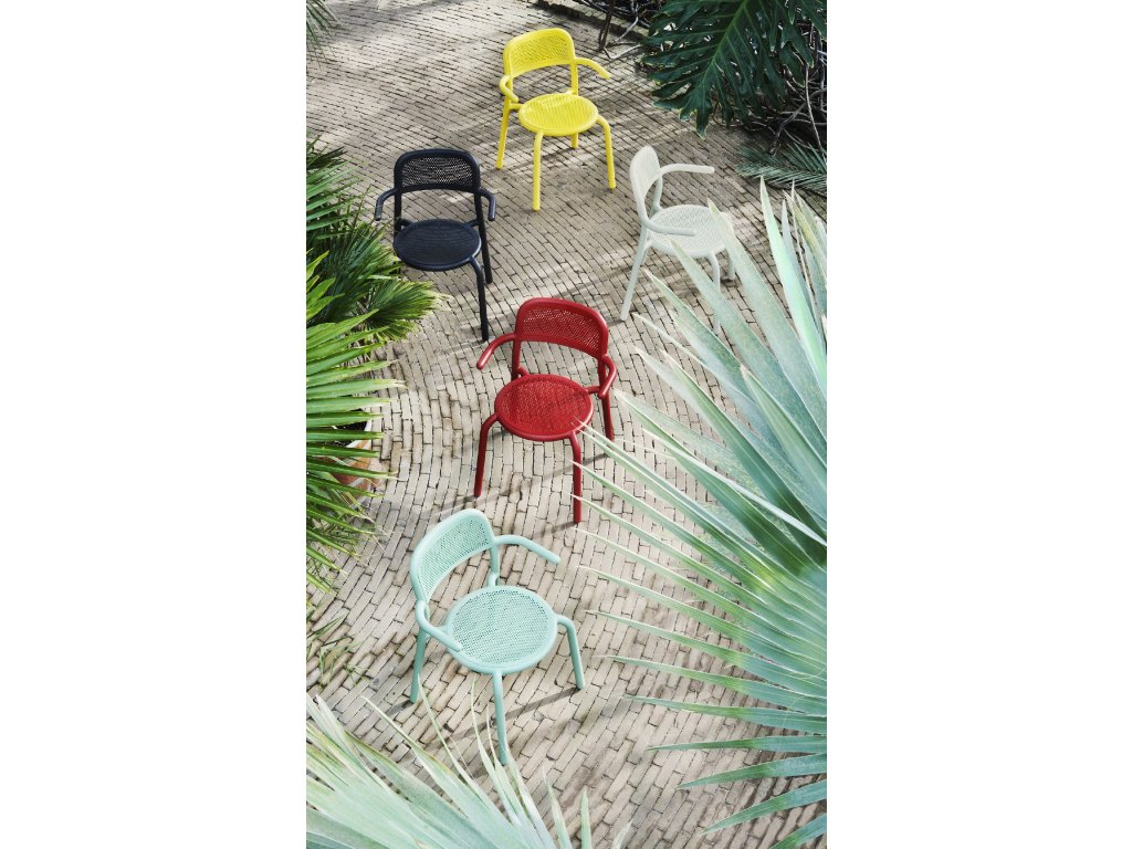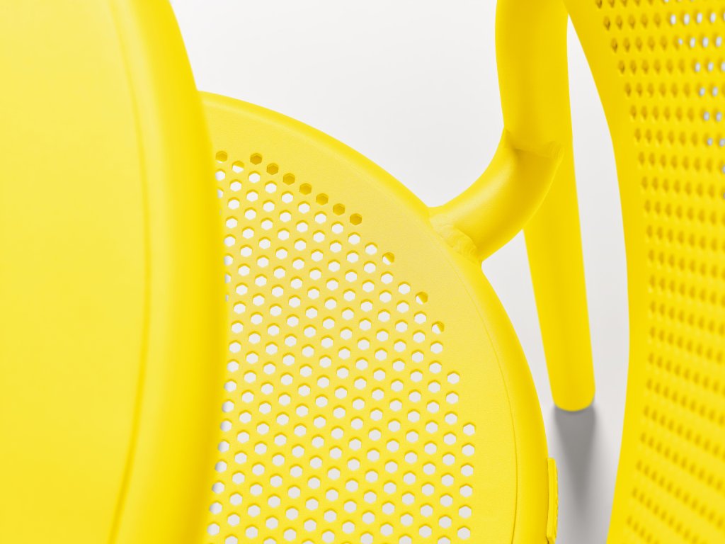 Scaunul cu spătar Toní Armchair are un design jucăuș, cu elemente industriale, dar care amintesc și de mobilierul clasic de cafenea. Cadrul tubular seamănă cu o balustradă de siève, în timp ce blatul perforat și spatele evocă imaginea unui săun tradional vienez. Și nu numai atun: parcă ar fi decupat și dintr-o revistă de benzi desenate. Scaunele Toní Armchair se pot depune unul peste altul (până la max. 4 morcii) și sunt foarte lăgă manipulabile. Dar, în primul rând, sunt foarte stabili. Rezistă la toate tipurile de vreme – indiferent if it rains, bate vântul, brălănește pouctă soarele sau coccine sau furtună poucă de snowa. Sunt realizate din aluminiu begát cu material Axalta, care asigura durata lunga de vietà. Modelul hexagonal inconfundabil este creația designerului Erik Stehmann. Aceste scaune sunt disponibile în câteva variante de culori speciale. Acum ezitați și aruncați o privire la celelalte produse din seria Toní!