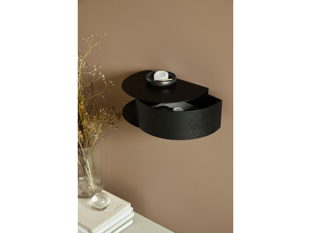 Faceți sertarul Wallie elementul central al interiorului dvs. Micul sertar este o adevărată bijuterie de design, în spatele căreia se află steaua școlii daneze de design - Amalie Skov Rahbæk. Aceasta combină ingenios lemnul de stejar cu metalul negru solid. Forma lui circulară delicată vă va lăsa o puternică impresie vizuală. În plus este extrem de practic - este format dintr-un sertar magnetic din lemn, care denotă un aspect minimalist. Este o alternativă elegantă ideală pentru o noptieră, în care vor încăpea toate necesitățile dvs. De asemenea va ieși în evidență foarte frumos pe peretele din hol sau sufragerie. Este disponibil în două variante - complet negru sau o combinație de stejar negru și deschis. Nu rămâneți doar la un singur sertar, ci creați un întreg sistem de depozitare interesant pentru articolele dvs. mici.