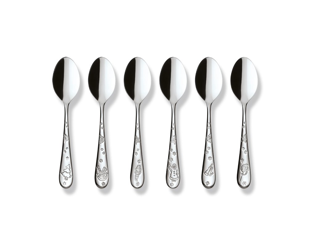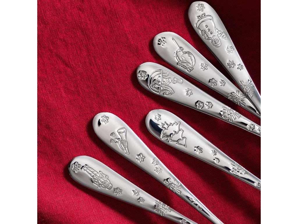 Descoperiți magia Crăciunului cu un set elegant de șase lingurițe de cafea din colecția Toy's Delight de la Villeroy & Boch. Lingurile din oțel inoxidabil sunt decorate cu motive în relief cu jucării pentru copii, care se potrivesc perfect cu porțelanul și sticla din aceeași colecție. Acest lucru creează un decor de masă elegant, coordonat, care va oferi mesei dvs. o atmosferă festivă unică.