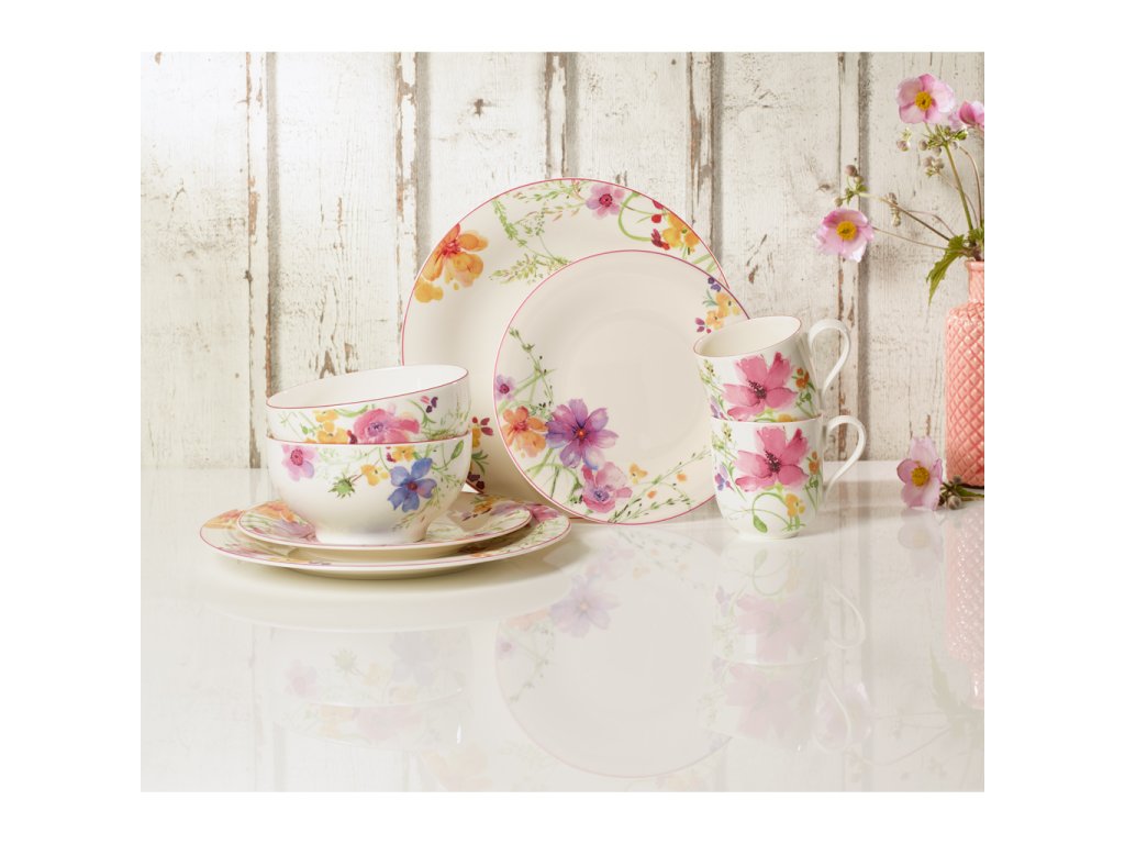 O inundație de flori în culori fine pastelate creează impresia unui tablou impresionist. Colecția Mariefleur Basic de la marca Villeroy & Boch aduce pe masa dvs. ceva extraordinar. Formă elegantă, calitate premium a materialului și un decor deosebit sunt exact acele trăsături, pe care le așteptați de la un serviciu de masă.