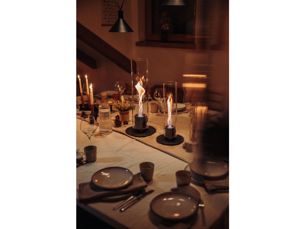 De asemenea, puteți transforma cu ușurință bioșemineele de masă Spin în bioșeminee de sine stătătoare . Pentru Spin, o „bază ridicată” este disponibilă ca accesoriu opțional. Folosind o bază ridicată, puteți realiza cu ușurință bioșeminee de sine stătătoare , ridicând înălțimea flăcărilor bioșemineului de la sol.