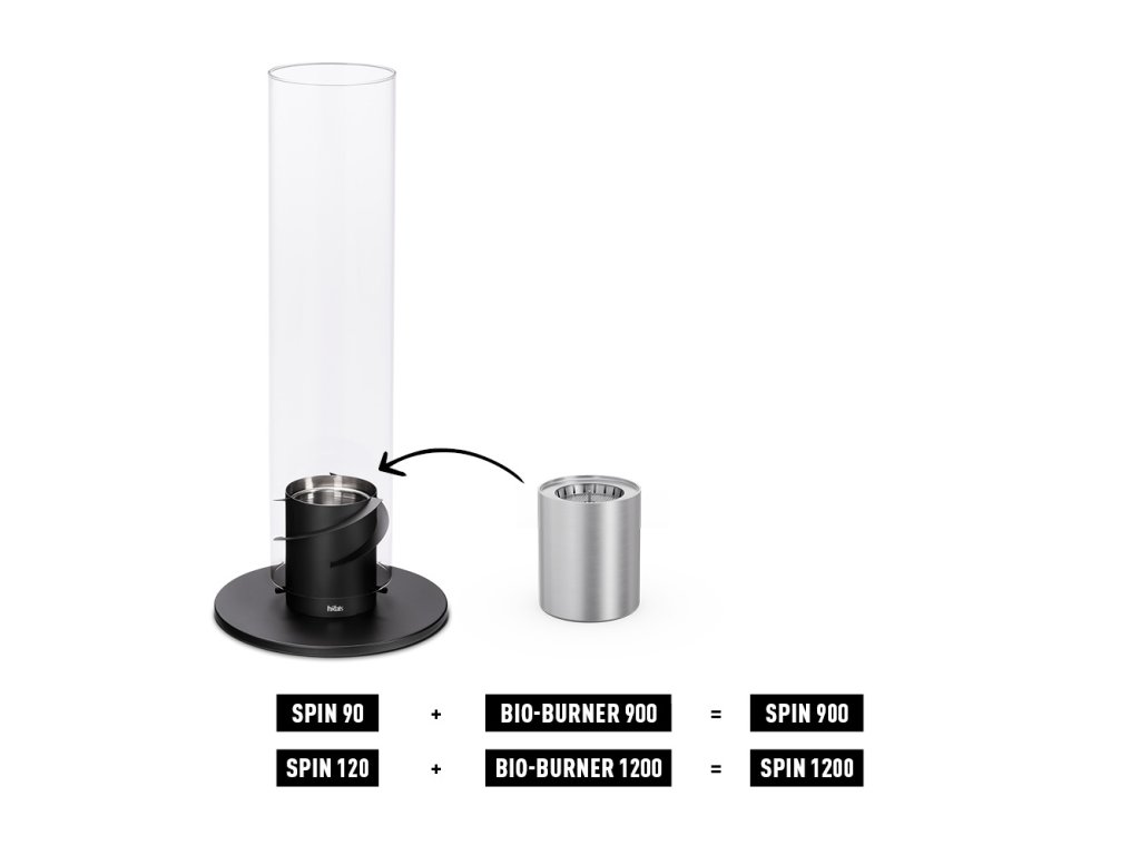 Bioșemineele de masă Hofats SPIN 90 au fost redenumite în SPIN 900. Iar schimbarea este radicală. Bioșemineele SPIN 90 originale au folosit combustibil gel. Acum, datorită noului arzător patentat, SPIN 900 cu arzător Bio-Burner poate fi folosit pentru bioetanol lichid.