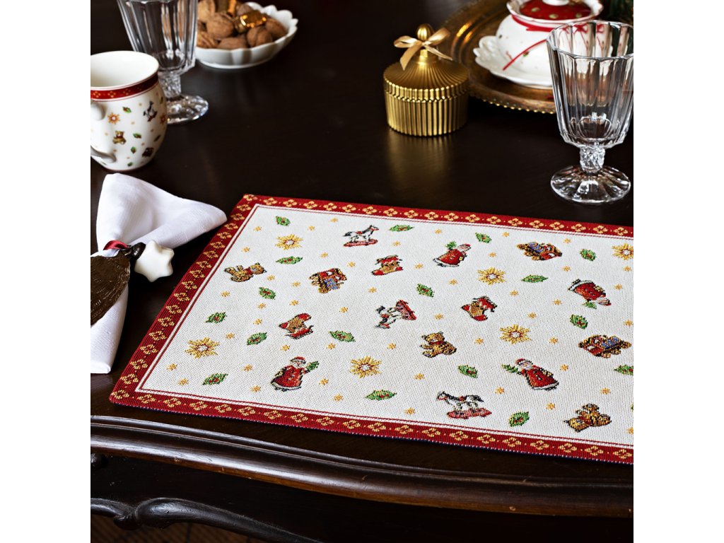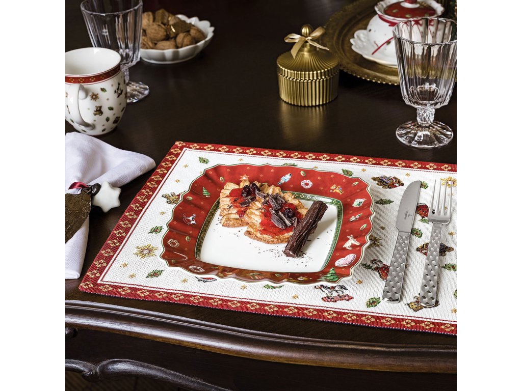 Colecția Toy's Delight de la compania germană Villeroy&Boch este esența Crăciunului și a atmosferei de Crăciun, pe care designerii le-au împletit literalmente în toate cele trei produse frumoase de care colecția este mândră. Ce ar putea evoca mai mult timpul Crăciunului decât un brad împodobit, plin de lumini, pe care cad încet fulgi de zăpadă albi? Puteți găsi acest motiv și alte motive pe suporturi de farfurie unice, realizate din 70% bumbac, în două variante de culoare - alb-roșu și roșu-verde - sau pe materialul pentru șervete de bucătărie, cu ajutorul cărora veți obține la masă o notă festivă fermecătoare, datorită căreia vă veți bucura de o cină de Crăciun în familie la o masă decorată magic.