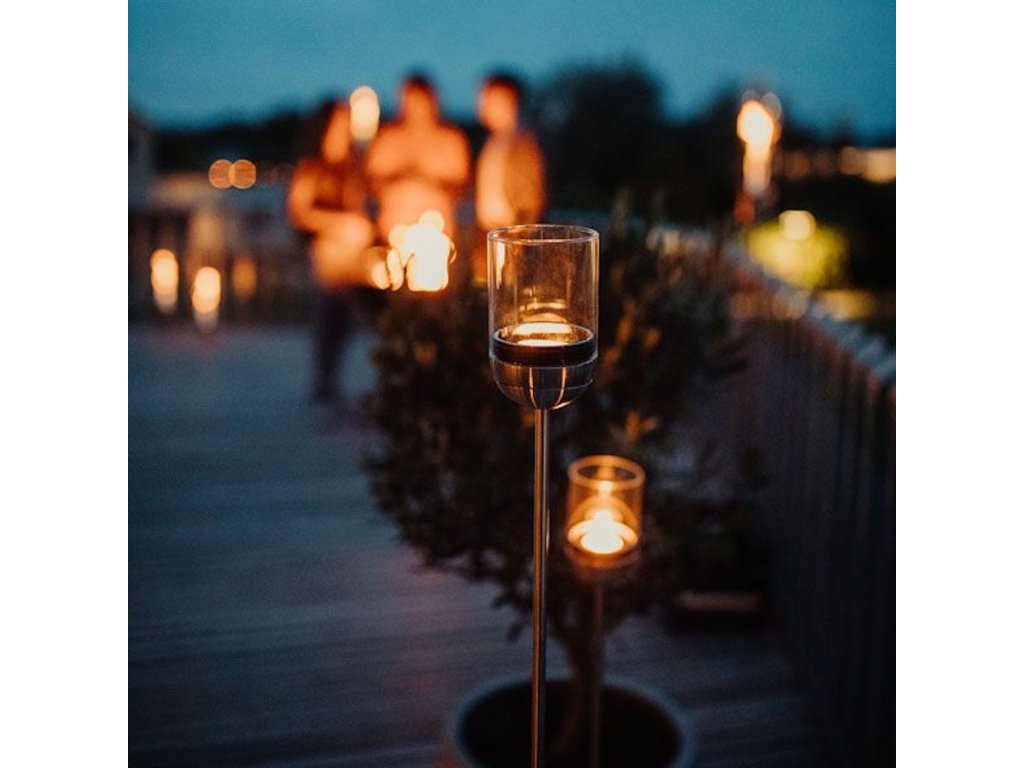 Setul conține 4 tije cu lungimea de 30 cm (înălțimea poate fi ajustată după dorințele și nevoile dvs.), un bol și un vârf. Este perfect pentru a fi folosit în grădină - trebuie doar să înfigeți tijele în gazon sau în ghivecele cu flori și astfel veți obține un înlocuitor de lux pentru lămpile în aer liber. Dacă aveți mai multe lumânări, acestea vor străluci ca o mulțime de licurici datorită tijelor de diferite înălțimi.