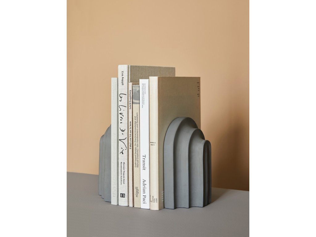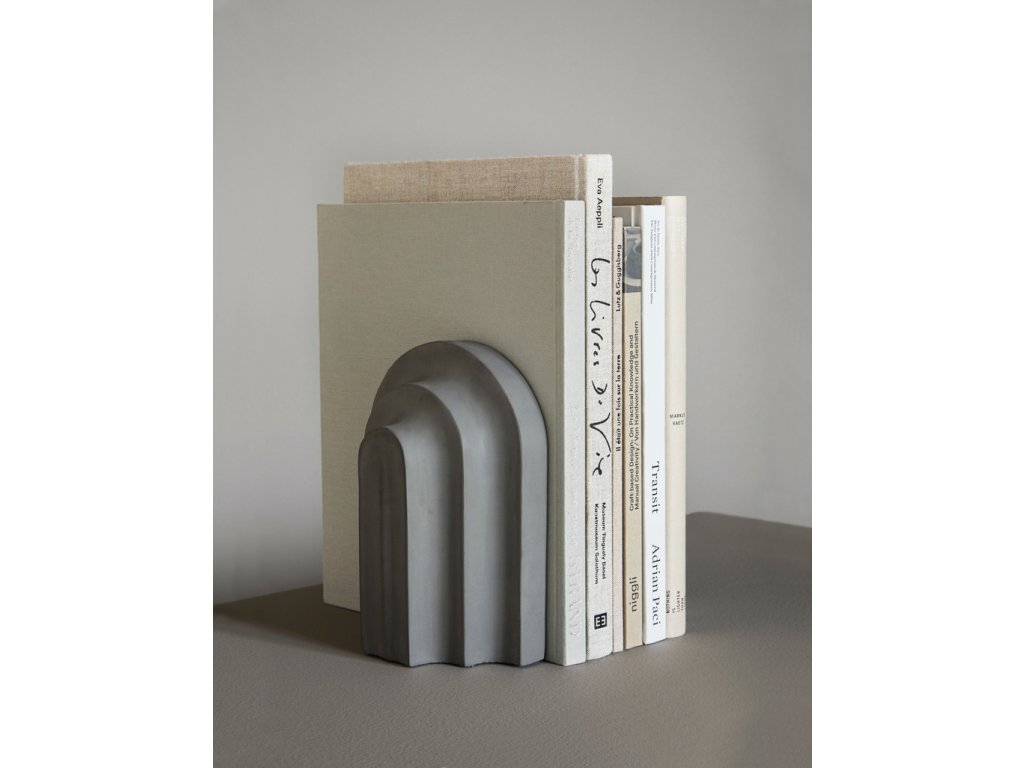 Suportul lateral pentru cărți Arkiv este un accesoriu indispensabil pentru toți iubitorii de cărți. Împreună cu o serie de cărți, acesta formează un set grafic de arce și blocuri. Este inspirat din estetica și funcția coloanelor și arcadelor arhitecturale clasice. Prin forma sa proaspătă surprinde lumina și aruncă umbre armonioase, devenind astfel o piesă de design fascinantă și frumoasă. Cărțile le puteți pune vertical sau pe orizontală. Organizați-vă biblioteca cu stil! Autoarea designului este originară din Siberia, Ella Shegai. Această tânără designer, care trăiește în Norvegia, în proiectarea produselor se concentrează pe motive interculturale și asociații.