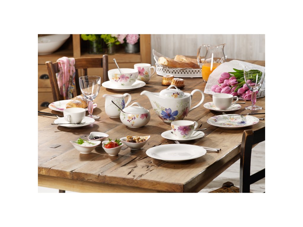 O inundație de flori în culori fine pastelate creează impresia unui tablou impresionist. Colecția Mariefleur Basic de la marca Villeroy & Boch aduce pe masa dvs. ceva extraordinar. Formă elegantă, calitate premium a materialului și un decor deosebit sunt exact acele trăsături, pe care le așteptați de la un serviciu de masă.
